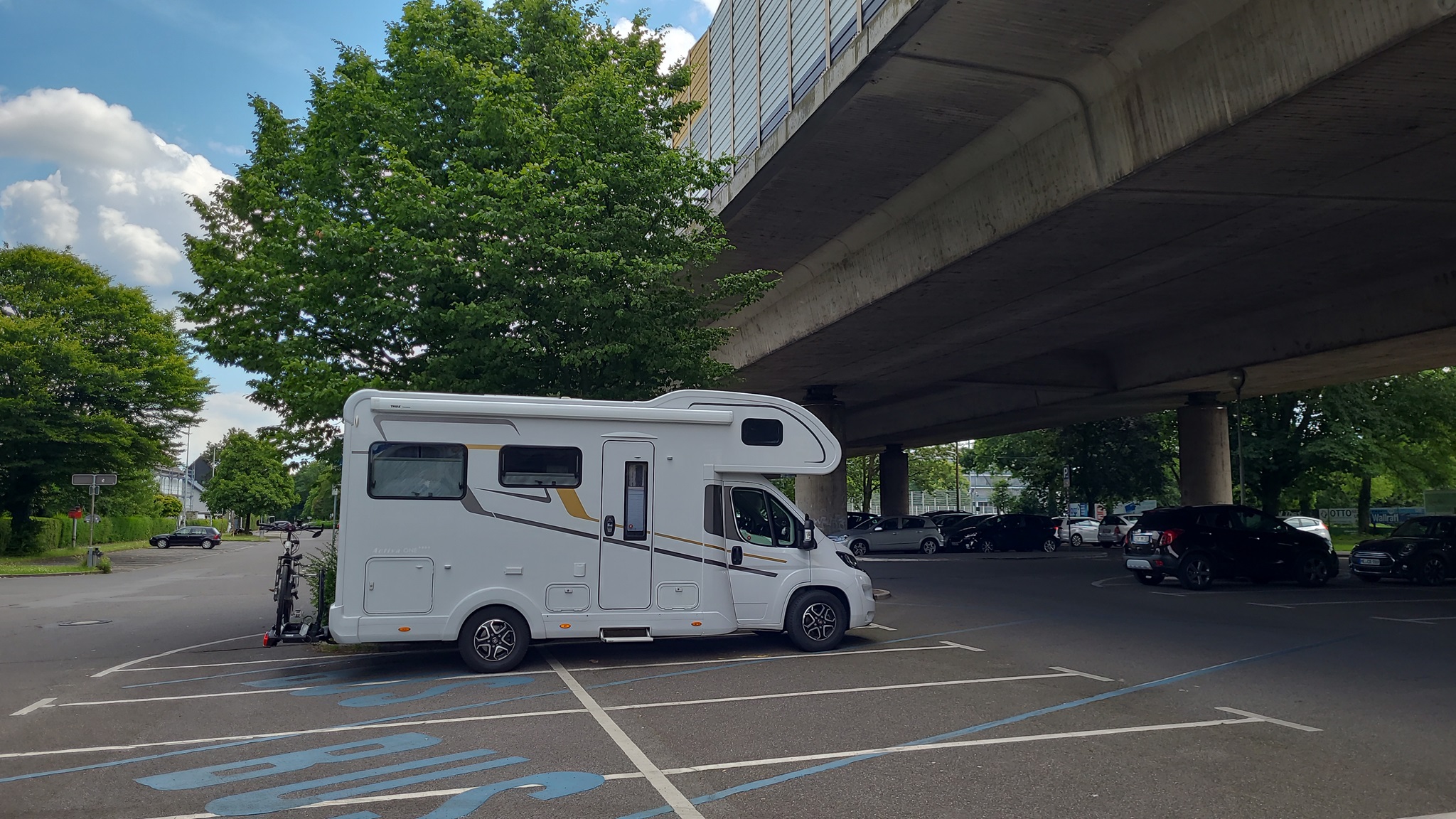 Alle Parzellen sind definitiv belegt. Ich habe jetzt nochmal umgeparkt und mich auf die Linie gestellt. Damit passt der Van locker daneben. Es ist immer noch mehr Platz als auf so manchem anderen Platz, wo wir schon waren.