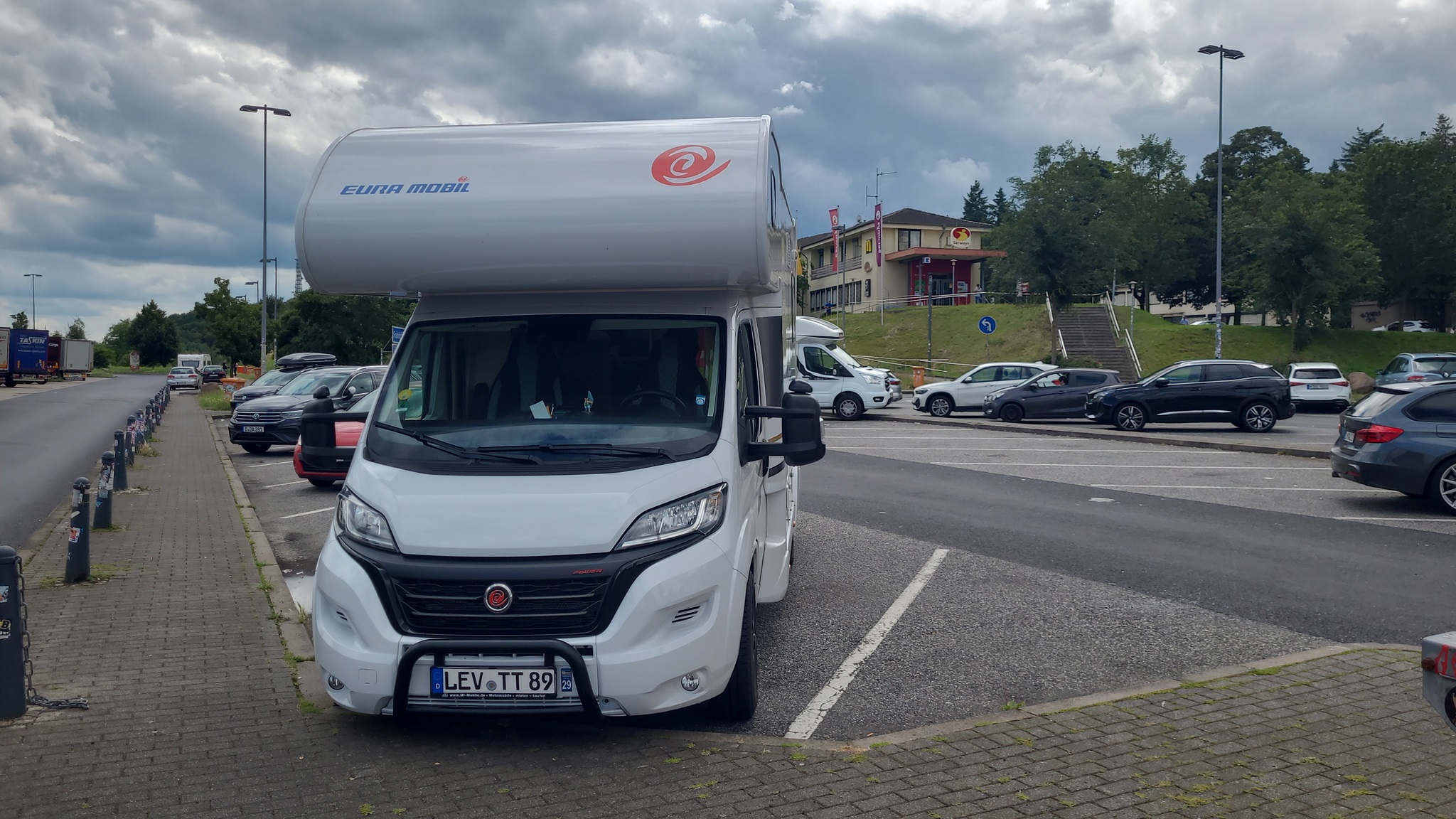 Meine Entscheidung für rechtsrheinisch hat auch damit zu tun, dass es gefühlt auf der A3 weniger Überholverbote gibt als auf der A61. Trotzdem ist ein Stundenschnitt von knapp unter 70 km/h nicht gerade toll. Bis nach Bad Camberg, wo ich eine erste Pause einlege, dauert es dann auch zwei Stunden.