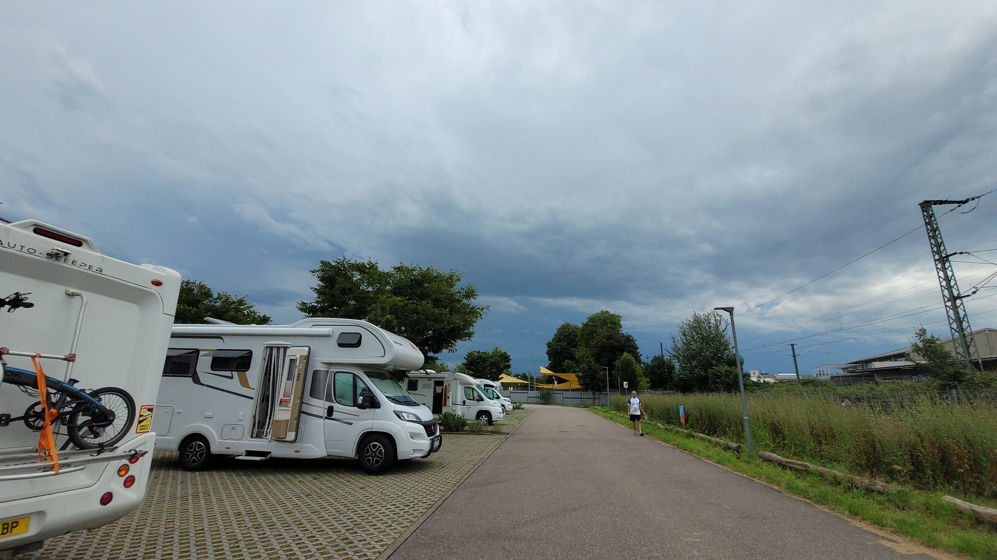 Östlich von uns ziehen starke Gewitter vorbei. Im Radio ist von 3cm-Hagel die Rede. Da haben wir Glück, dass wir in Sinsheim nichts davon abbekommen.