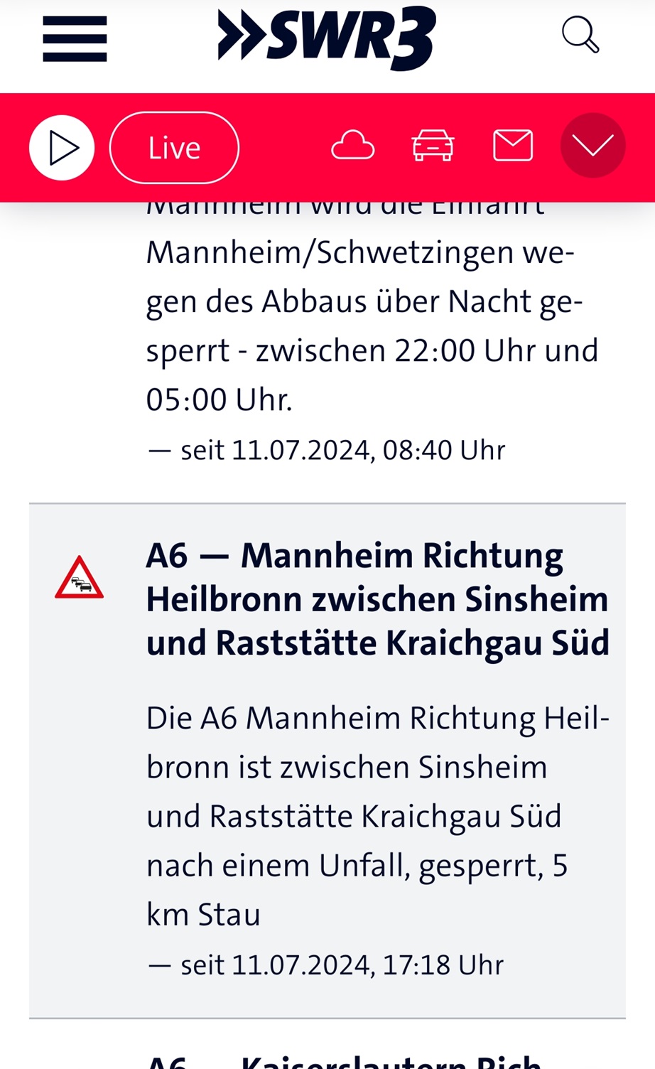 Aber die Fahrt macht heute keinen Spaß. Alle fahren so hektisch und es ist permanent eine einzige Drängelei auf der Autobahn. Kein Wunder, dass da auch einige Unfälle passieren, die dann wieder zu Staus führen.