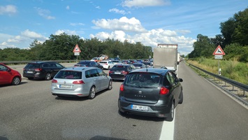 Heute ist endlich mal entspanntes Fahren auf der Autobahn möglich. Zumindest auf meiner Strecke. In der Gegenrichtung, also Richtung Süden, gibt es einige Staus, denn es ist sehr viel Ferienverkehr unterwegs.
