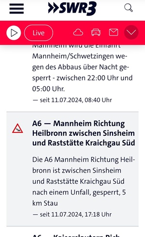 Die Krönung ist dann eine Sperrung der A6 wenige Kilometer vor mir in Höhe Sinsheim. Dabei wollte ich eigentlich dort auf der Raststätte eine zweite Pause einlegen. Aber da der Verkehr eine ganze Zeit lang nur steht und es keinen Meter mehr weiter geht, kann ich praktischerweise zwischendurch schnell auf die Toilette, mir was zu Essen nach vorne holen und ohne weitere Pause dann noch bis zum Ziel fahren.