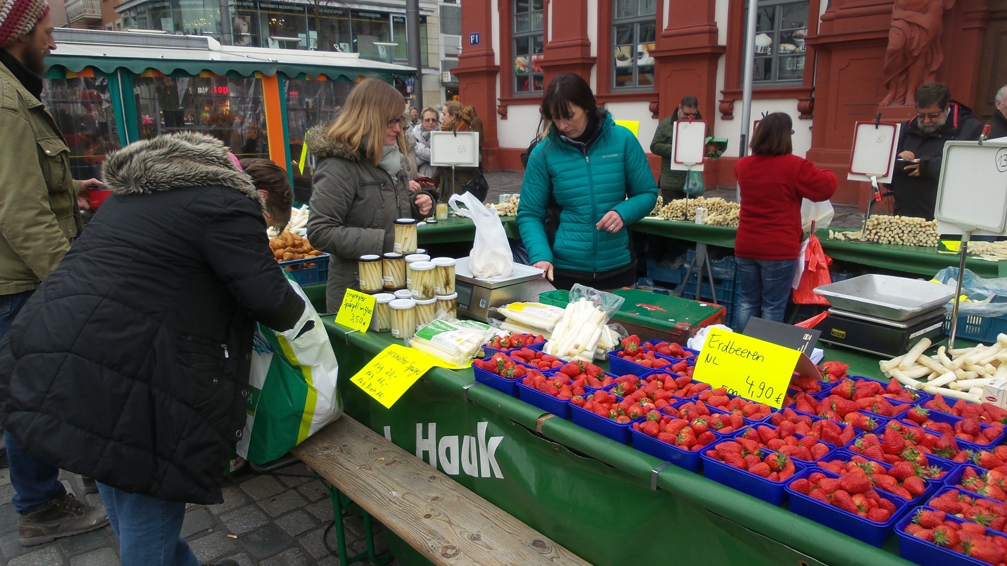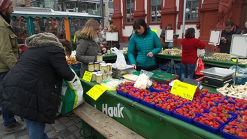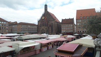 Nach der Burg bleibt uns noch etwas Zeit, um nochmal in die Innenstadt zu gehen. Auf dem Hauptmarkt, dem Marktplatz auf dem auch der jährliche Christkindlmarkt stattfindet, ist auch heute Markttag.