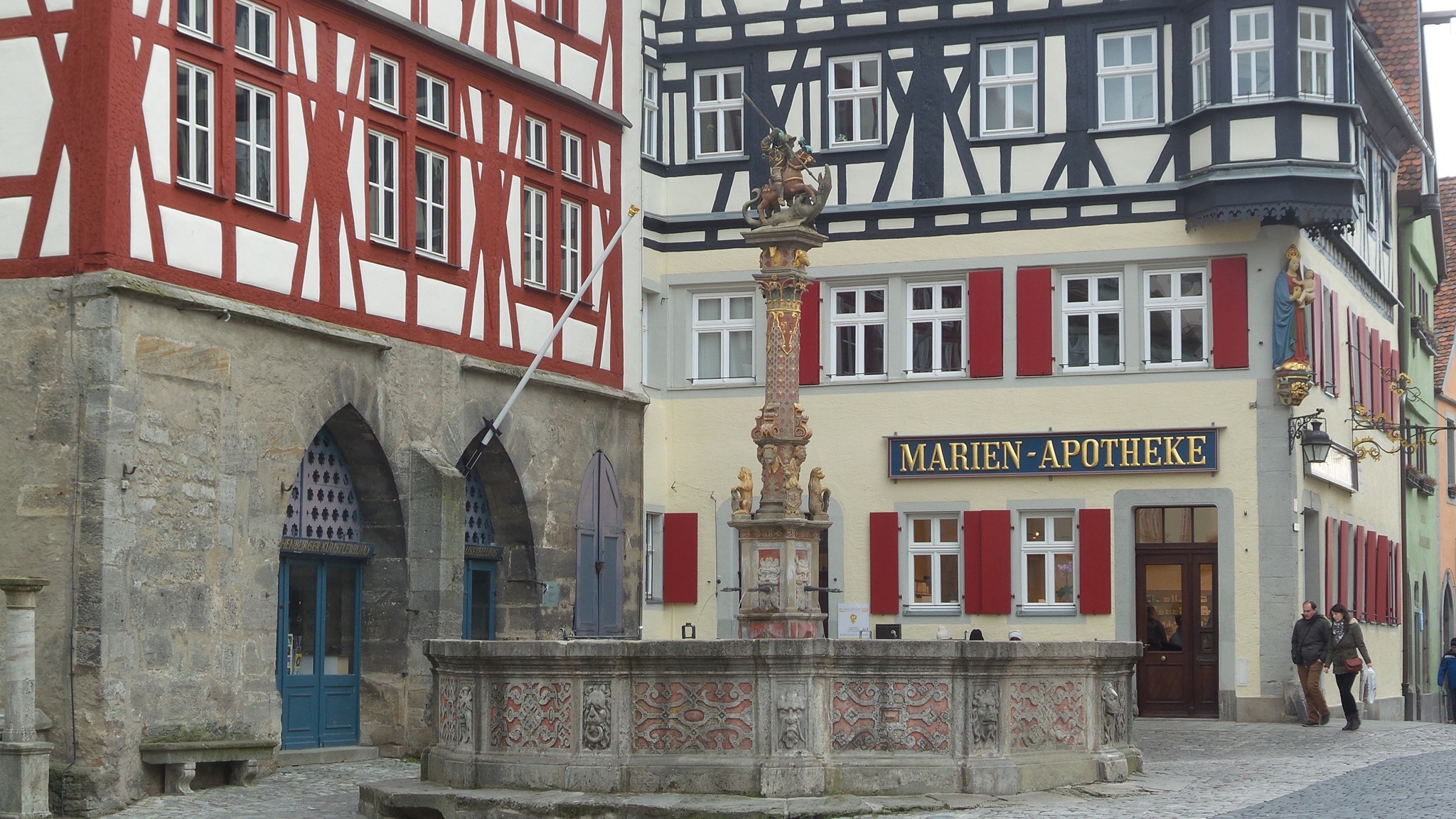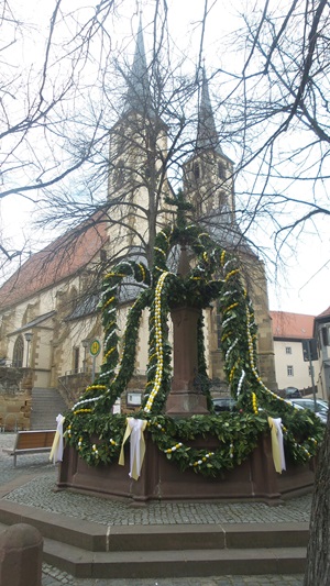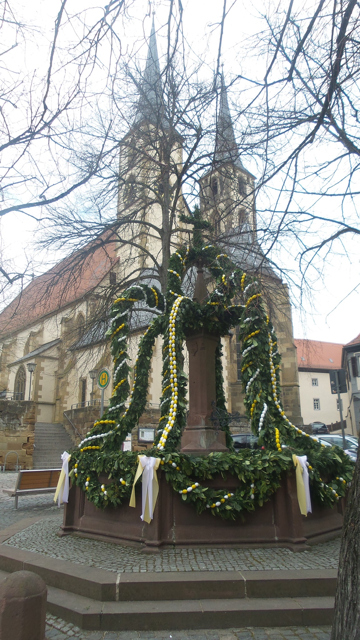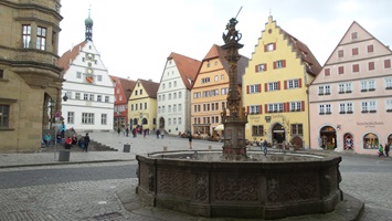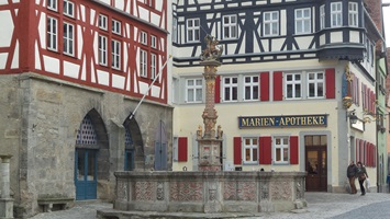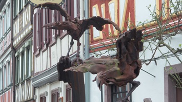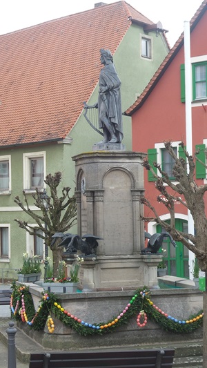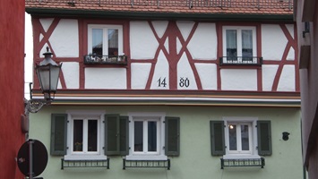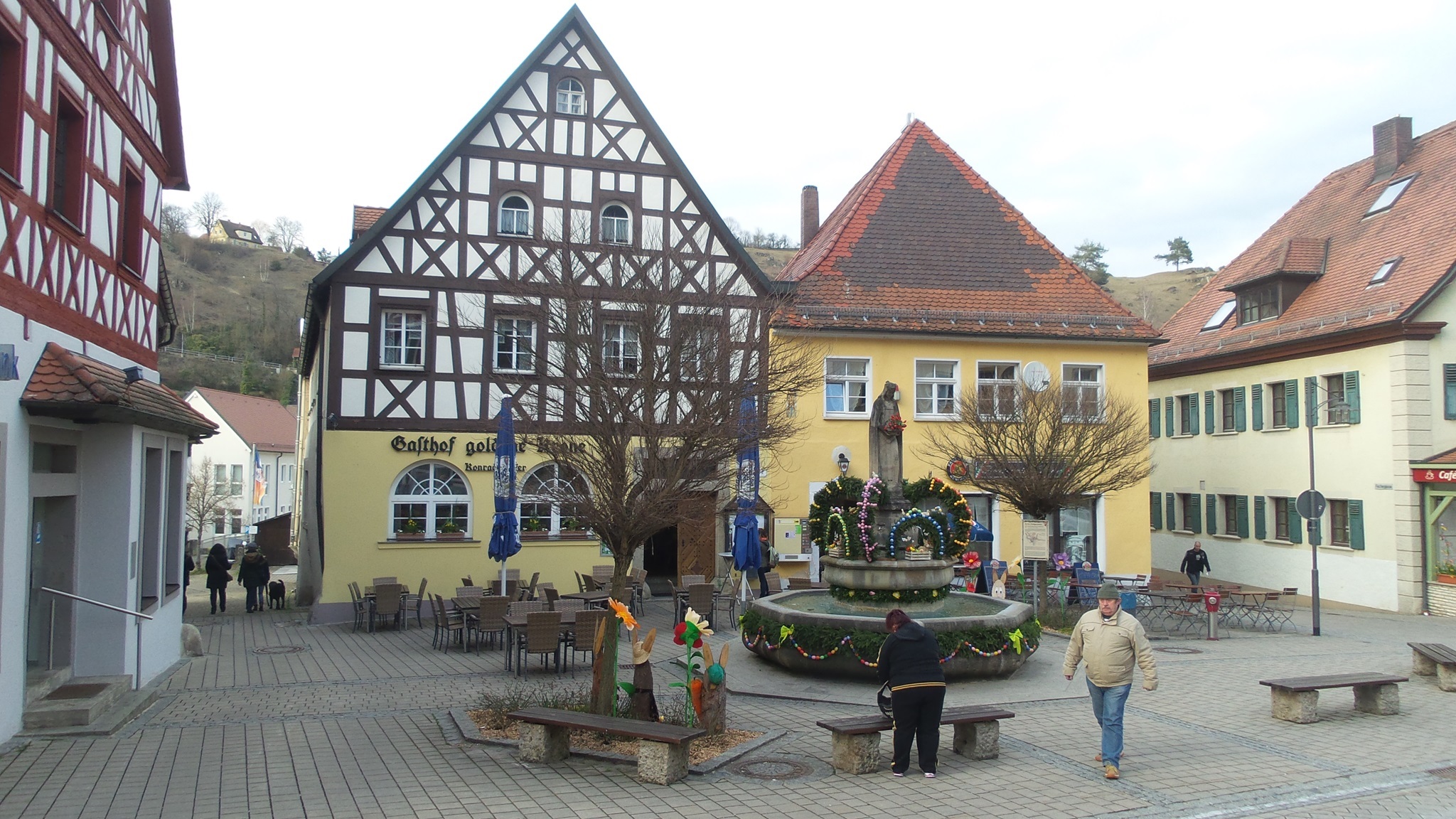 Die Stadt selber ist auch wieder sehr schön. Praktisch jedes Haus hat hier eine Geschichte, die auf kleinen Tafeln an der Fassade auch erwähnt wird. Auf dem kleinen Platz vor dem Haus des ehemaligen Deutschritterordens steht das Denkmal von Wolfram von Eschenbach, dem Dichter des „Parzival“. Auch wenn wir dieses Werk nie gelesen haben, schon alleine weil uns die Sprache viel zu anstrengend ist, haben wir natürlich trotzdem schon von diesem Werk gehört.