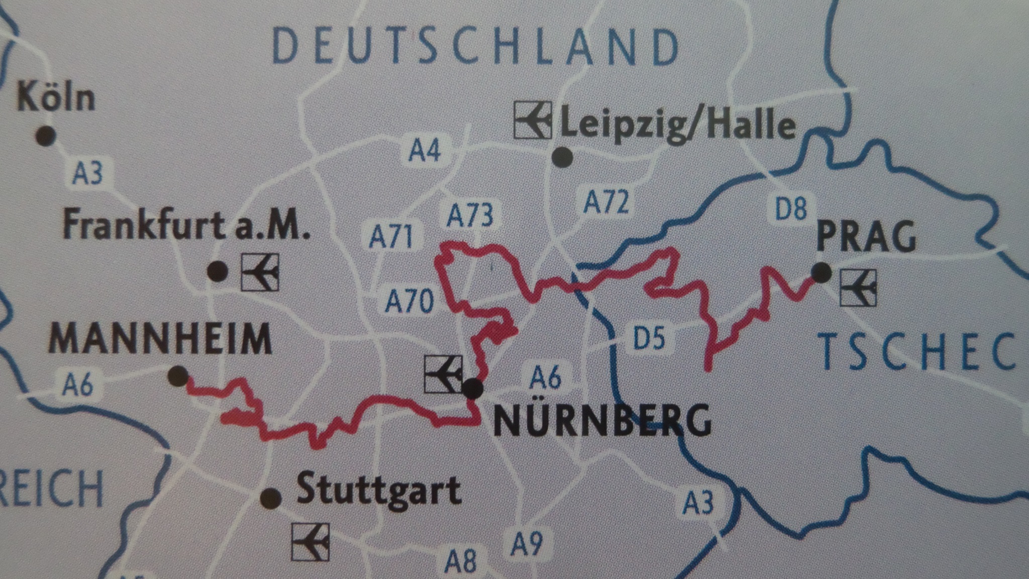 Sie beginnt im Westen in Mannheim und läuft dann in wildem Zick-Zack bis in den Bayrischen Wald und setzt sich anschließend auch noch weiter bis nach Prag fort. Viele bekannte Orte liegen an der Route und versprechen einiges an Abwechslung.