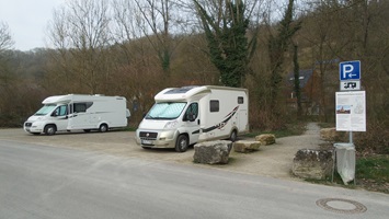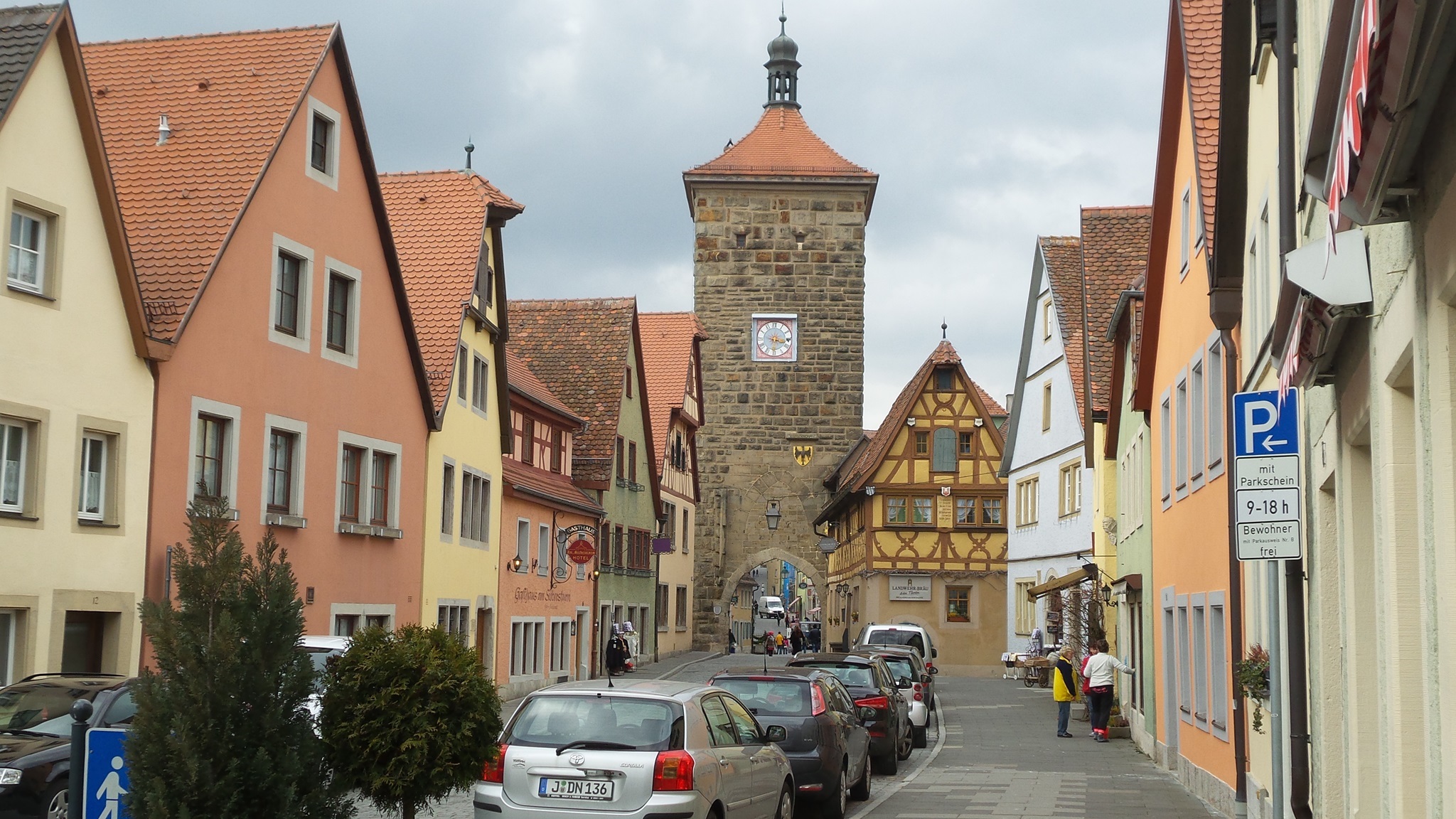 In Rothenburg steuern wir wieder den Parkplatz P2 an, auf dem wir vor vier Jahren auf unserer Frühjahrstour durch das "liebliche Taubertal" schon einmal übernachtet hatten. Damals war es hier allerdings brechend voll, weil wir in der Nacht auf den 1. Mai hier waren. Heute ist kaum die Hälfte der Plätze belegt und wir können uns eine schöne Ecke aussuchen.