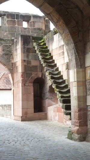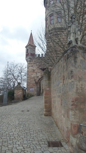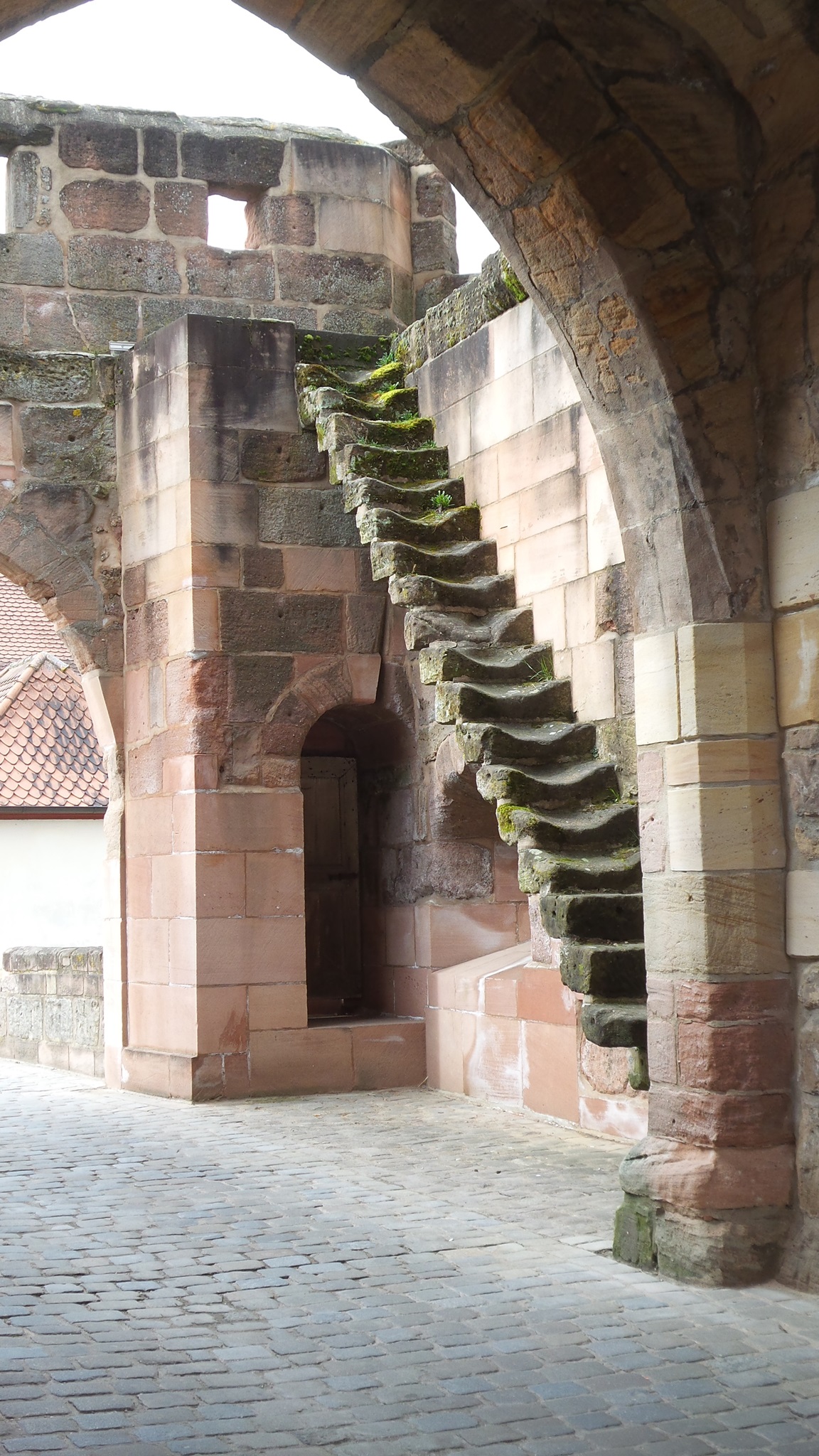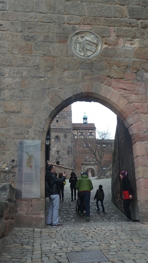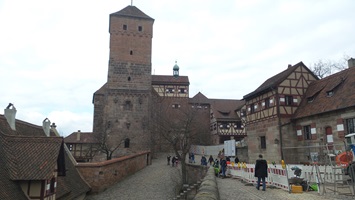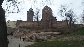 Leider ist die höchstmögliche Parkzeit am Parkscheinautomaten hier auf zwei Stunden begrenzt. Wir machen uns also auf den Weg in die Stadt und gehen als erstes zur Nürnberger Kaiserburg, die auf einem Hügel praktisch mitten in der Stadt liegt. Schließlich folgen wir ja der Burgenstraße, so dass die Burg quasi einen Pflichttermin darstellt.