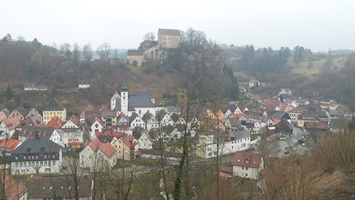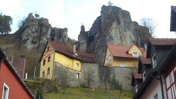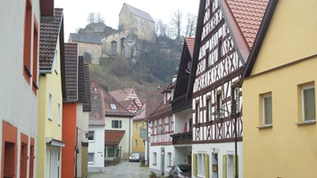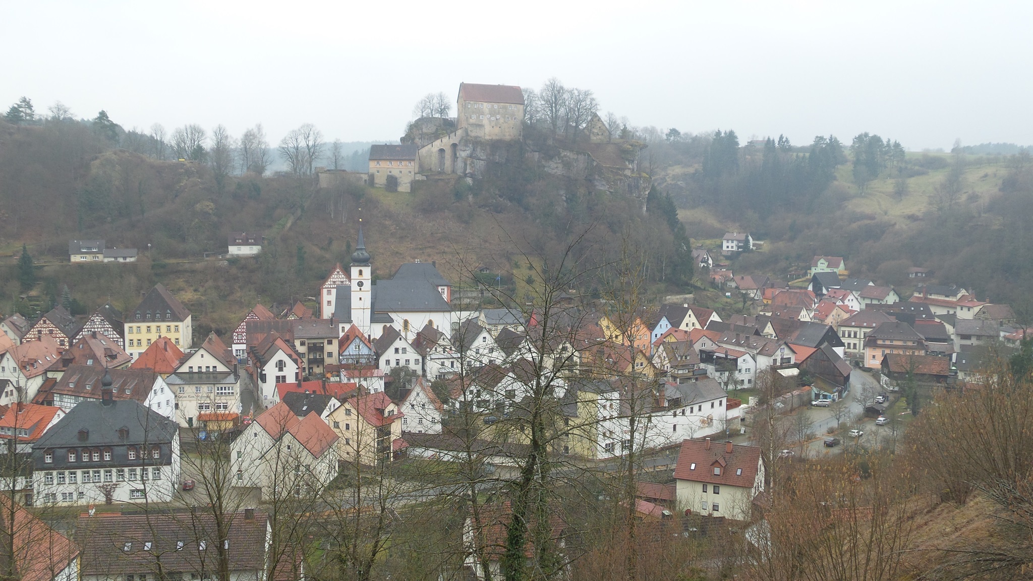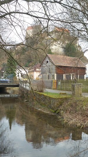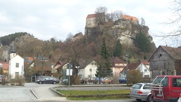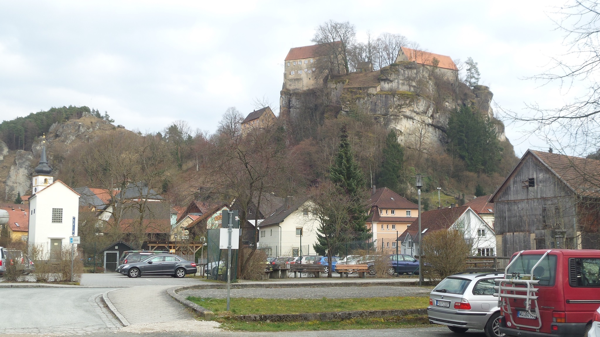 In Pottenstein suchen wir zunächst den Stellplatz auf, stellen fest, dass er uns so gefällt, dass wir hier heute übernachten werden und fahren dann weiter in den Ort selber. Wir haben Glück und finden in dem engen Ort einen Parkplatz, auf den auch unser Emil passt.