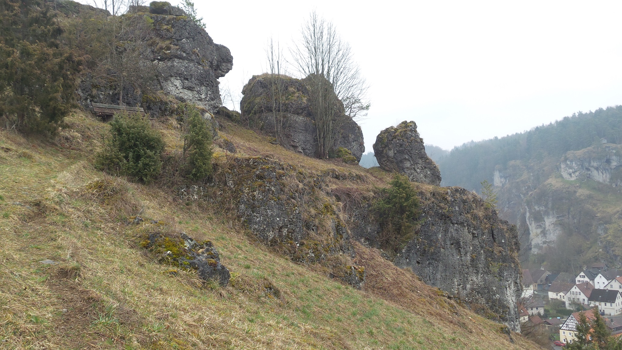 Stattdessen beschließen wir, uns nun der Fränkischen Schweiz zuzuwenden. Zunächst bleibt die Strecke noch normal flach und relativ langweilig wie zuvor im Tal der Regnitz. Doch dann wird das Wisenttal immer enger, kurviger und steiler. Nun befinden wir uns in einer richtig schönen Mittelgebirgslandschaft.
