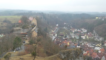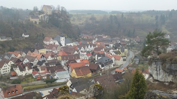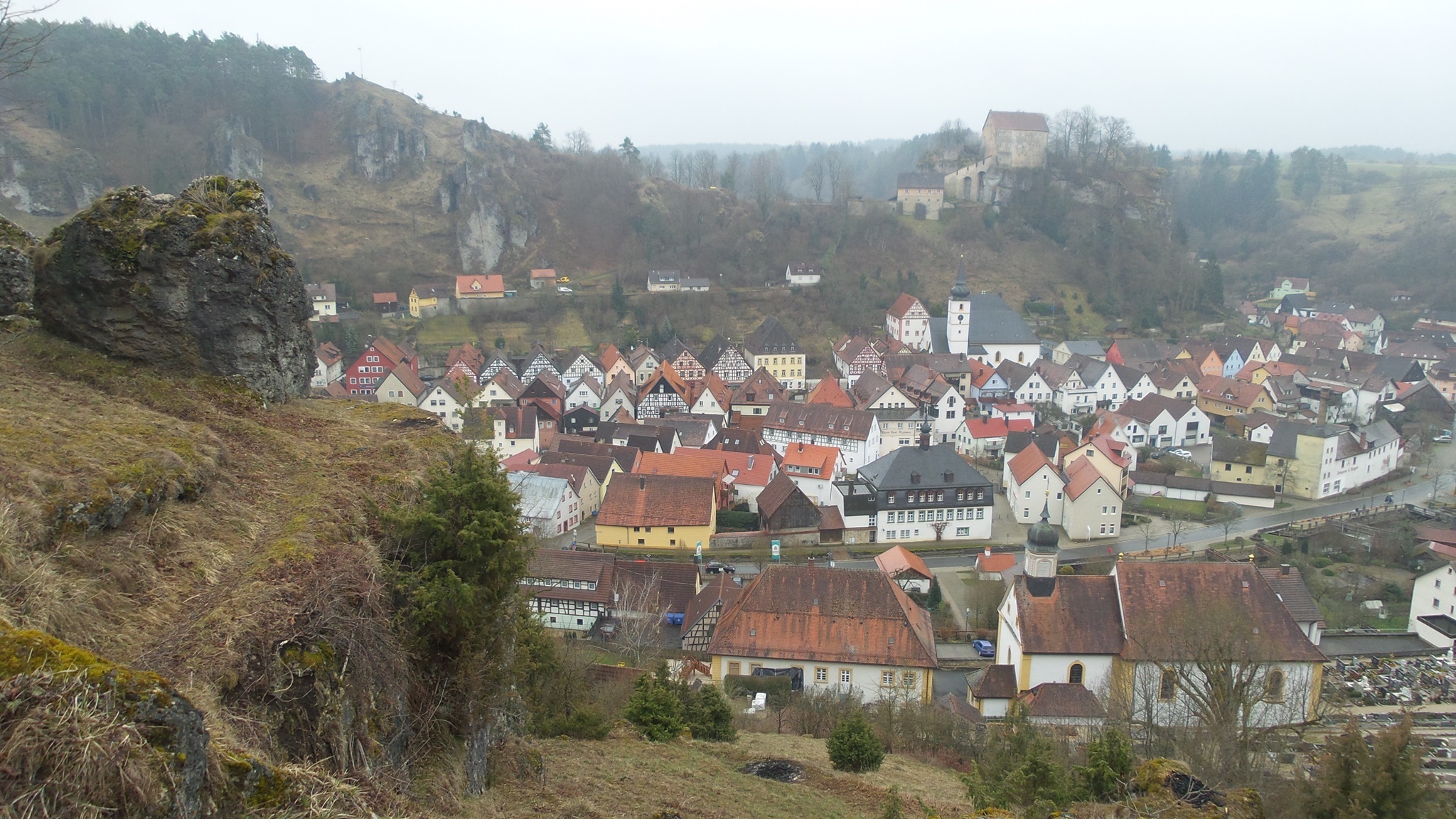 In der Nacht hat es angefangen leicht zu regnen, aber am Morgen scheint es nicht allzu schlimm zu werden. Wir fahren wieder runter nach Pottenstein, um uns dort einen Parkplatz zu sichern, bevor dort der Rummel losgeht.