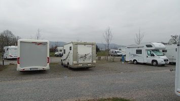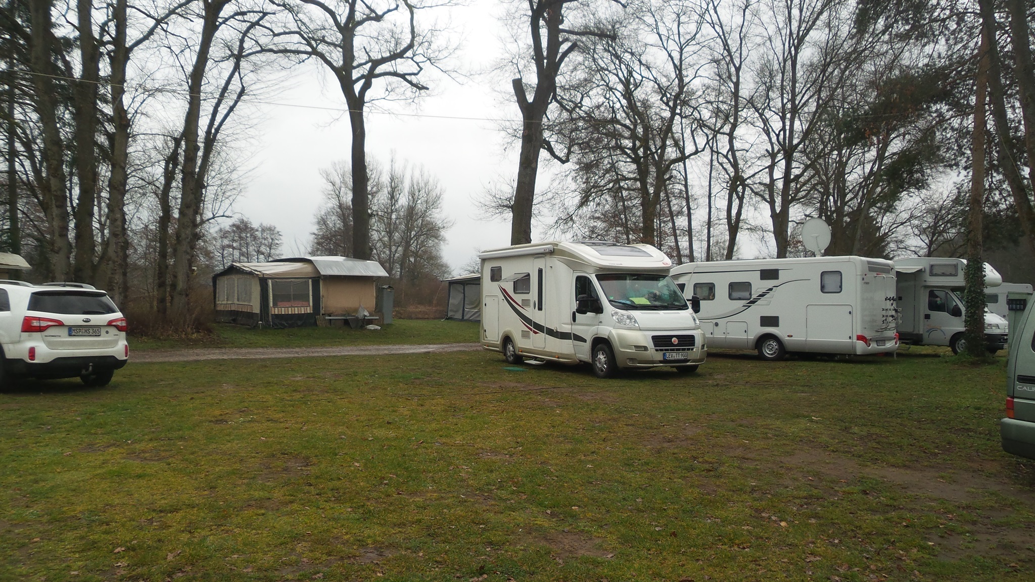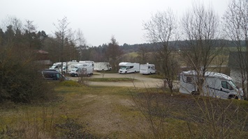 Es gibt keine parzellierten Stellplätze und man sucht sich seinen Platz selber. Dabei stellen wir fest, dass auch dieser Campingplatz sehr voll ist. Kaum zu glauben, dass so viele Camper bei diesem Mistwetter unterwegs sind. Aber der Platz ist noch lange nicht voll, denn den ganzen Nachmittag über kommen weitere Wohnwagen und Reisemobile an.
