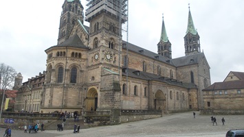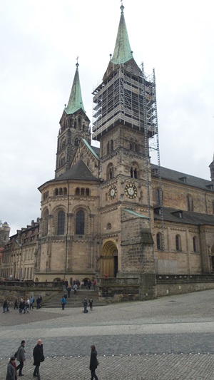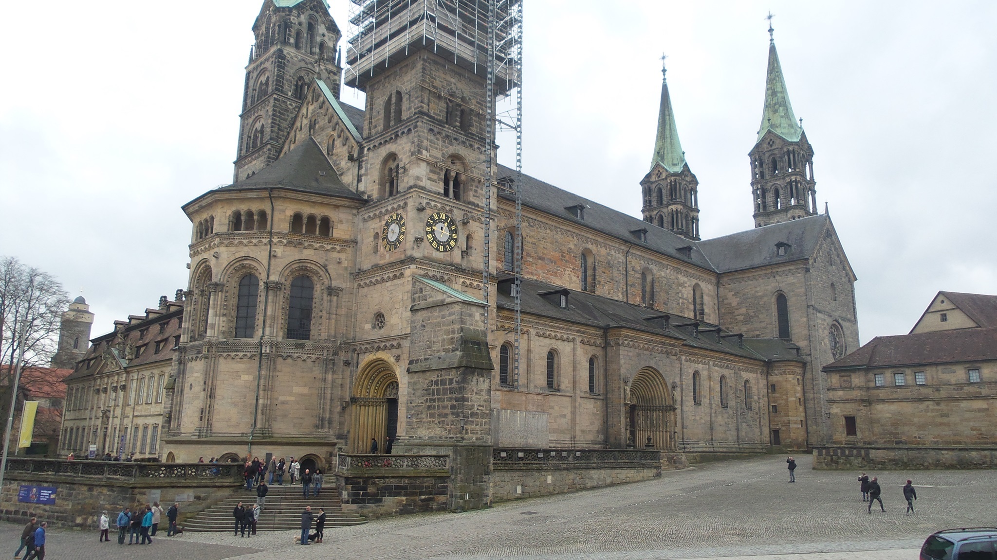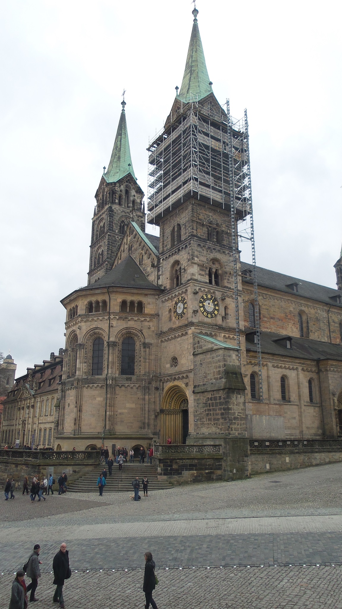 Der Bamberger Dom ist so groß, dass ich ihn mit seinen vier Türmen nicht komplett auf ein Foto bekomme. Wir besichtigen auch das Innere mit dem bekannten Altar, den Veit-Stoß aus Lindenholz geschnitzt hat. Und natürlich bleiben wir auch am „Bamberger Reiter“ hängen, der Reiterstatue, von der man bis heute nicht genau weiß, wen sie eigentlich darstellen soll.