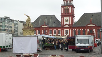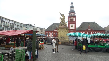 Dann machen wir uns zu Fuß auf den Weg. Die Museen im Schloss interessieren uns nicht und wir schauen uns das riesige Gebäude nur von außen an. Das andere Wahrzeichen Mannheims, den alten Wasserturm, hatten wir bereits bei unserer Stadtumrundung gesehen, so dass wir einfach nur ins Zentrum gehen.