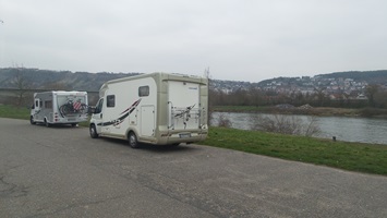 In Mosbach fahren wir zunächst an der Einfahrt zum Stellplatz vorbei. Nachdem wir gewendet haben, sind wir schnell der Meinung, dass uns der Platz nicht gefällt. Wir fahren noch weiter bis Obrigheim, wo wir uns auf einen Stellplatz direkt am Neckarufer stellen. Obwohl die Lage sehr schön ist, steht hier außer uns nur noch ein weiteres Wohnmobil.3. Nacht