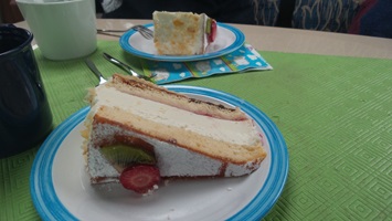 Dort frühstücken wir dann erst mal. Danach gibt es geteiltes Programm. Tina geht nebenan ins Hallenbad zum Schwimmen, während ich gerne etwas auf die umliegenden Hügel wandern möchte.