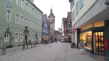 Verlaufen kann man sich praktisch nicht, da der Zugang zur Hauptstraße, der Fußgängerzone, unübersehbar ist. Wir folgen der langgestreckten Fußgängerzone immer geradeaus bis zum Marktplatz.