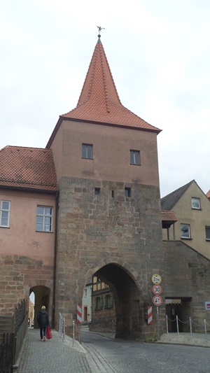 Nächster Ort an der Burgenstraße ist Abenberg. Das Navi will uns direkt ins Stadtzentrum führen. Aber, Überraschung, es gibt ein Stadttor, das nur bis zu einer Durchfahrthöhe von 2,7m durchfahren werden darf. Da ist unser Emil etwas zu hoch. Wir drehen um und nehmen die Umgehungsstraße.