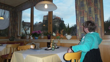 Zurück bei Emil beschließen wir, dass die Küche heute mal kalt bleibt. Nach dem späten Frühstück sind wir hungrig genug für ein spätes Mittag- bzw. eher ein frühes Abendessen. Direkt neben dem Parkplatz liegt der „Forellenhof“, wo wir heute einkehren.