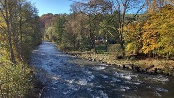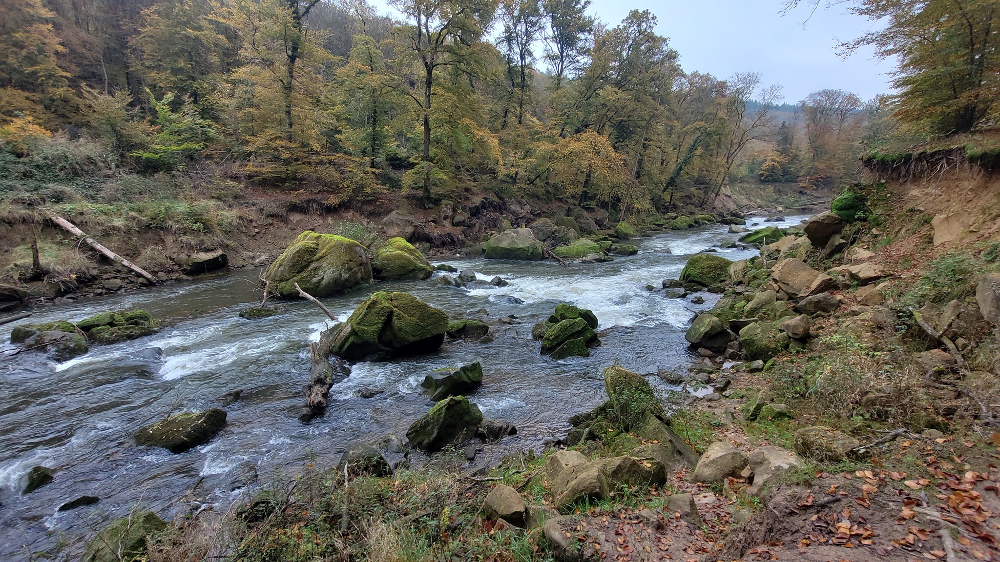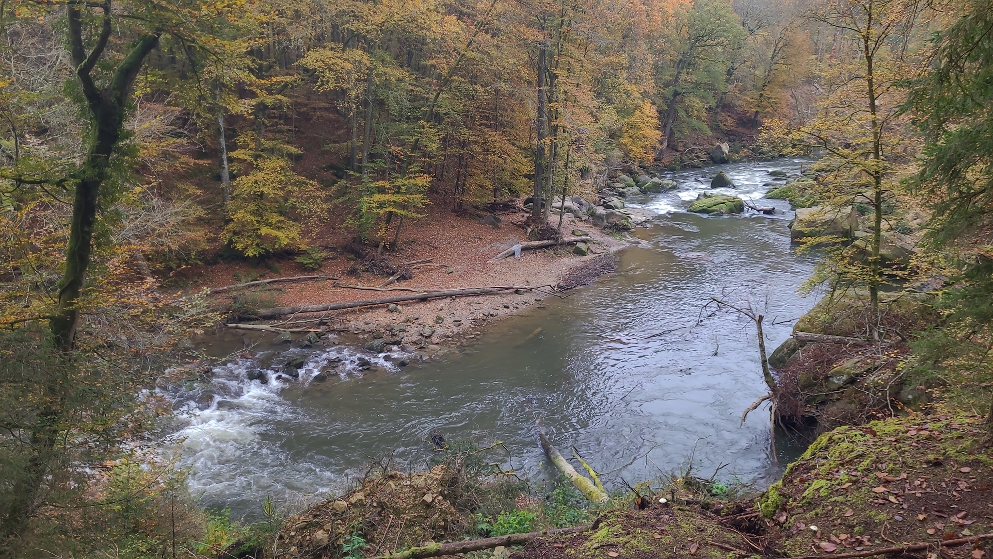 Nur einen Zwischenstopp lege ich ein. Und zwar an den sogenannten Irreler Wasserfällen. Die Prüm fließt hier durch eine enge Schlucht. Unter Kajakfahrern ist dieser Abschnitt ein sehr bekanntes Kriterium, das an alpine Maßstäbe heranreicht.