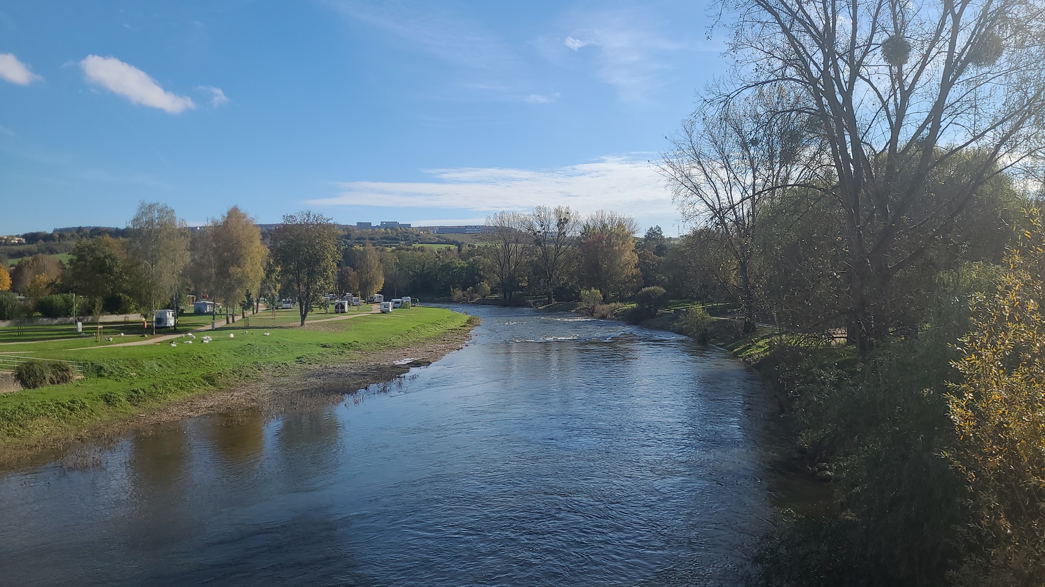 Ich gebe auf, fahre noch kurz Tanken und wechsle dann auf die andere Flussseite der Sauer nach Deutschland zurück. Dort fahre ich nach Echternacherbrück auf den dortigen großen Campingplatz direkt am Fluss.