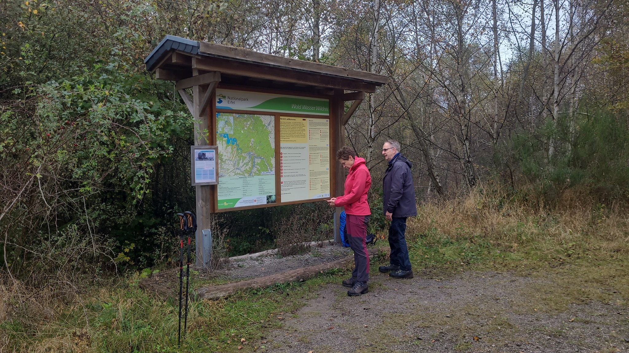 Mit dem Pkw der beiden fahren wir dann die 8 Kilometer zur Ordensburg Vogelsang, wo wir das Auto abstellen und zu unserer Wanderung starten.