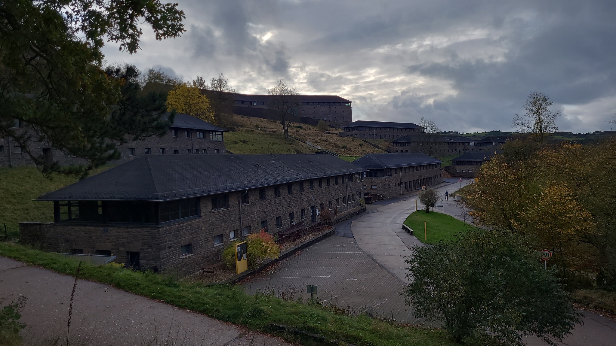 Nachdem wir auf dem Rückweg zum Schluss wieder den steilen Berg hinauf müssen, drehen wir noch eine bewusste Runde über das Gelände dieser ehemaligen Ausbildungs- und Kaderschmiede des 3. Reiches.