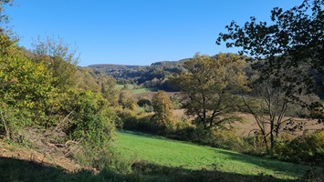 Am Ende mache ich das auch so. In Irrel nehme ich direkt den Rückweg zum Campingplatz anstatt noch komplett bis Echternach zu fahren. Es ist nämlich so bedeckt und mit dem Hochnebel geblieben, so dass die Luft nur sehr langsam wärmer wird. Kurz gesagt, ist es mir eigentlich zu kalt zum Radfahren, auch wenn es mir an den Steigungen immer wieder ordentlich warm wird.