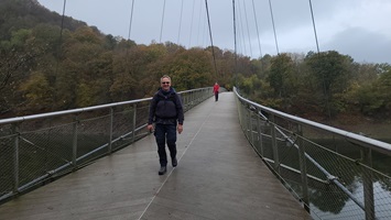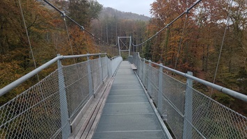 Die alte Holzbrücke wurde durch eine moderne Hängebrücke ersetzt. Allerdings ist der Weg über die Brücke nach oben gewölbt. Sie stützt sich also nach außen ab anstatt vollständig durchzuhängen. Trotzdem schwankt die Konstruktion spürbar. Schwindelfreiheit und Unempfindlichkeit gegen Seekrankheit sind hier also wichtig.