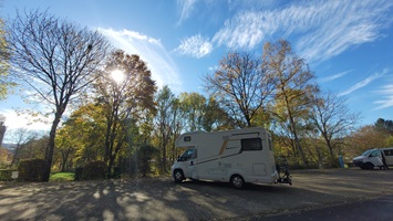 Über die Camping-Apps finde ich einen Stellplatz, der mir relativ zentral zu liegen scheint. Die Anfahrt dorthin stellt sich als schwierig heraus. Die wahnsinnigen Regenfälle im Frühjahr haben viele Straßen beschädigt und gerade laufen die Instandsetzungsarbeiten. Hierdurch sind viele Strecken gesperrt und lange Umleitungen über kleine, enge Straßen werden notwendig.