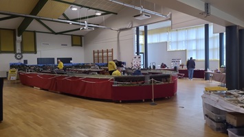 Die knapp 30 km lange Fahrt zur Modellbahnausstellung läuft problemlos. Aber ich bin viel zu früh dort und muss noch anderthalb Stunden warten, bis die Türe sich öffnet.