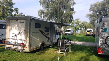Dort bleibe ich für die nächsten Tage einfach stehen. Die Surfschule liegt nur 100 m weiter direkt am Bodenseeufer, so dass ich da täglich schnell rüber laufen kann.
