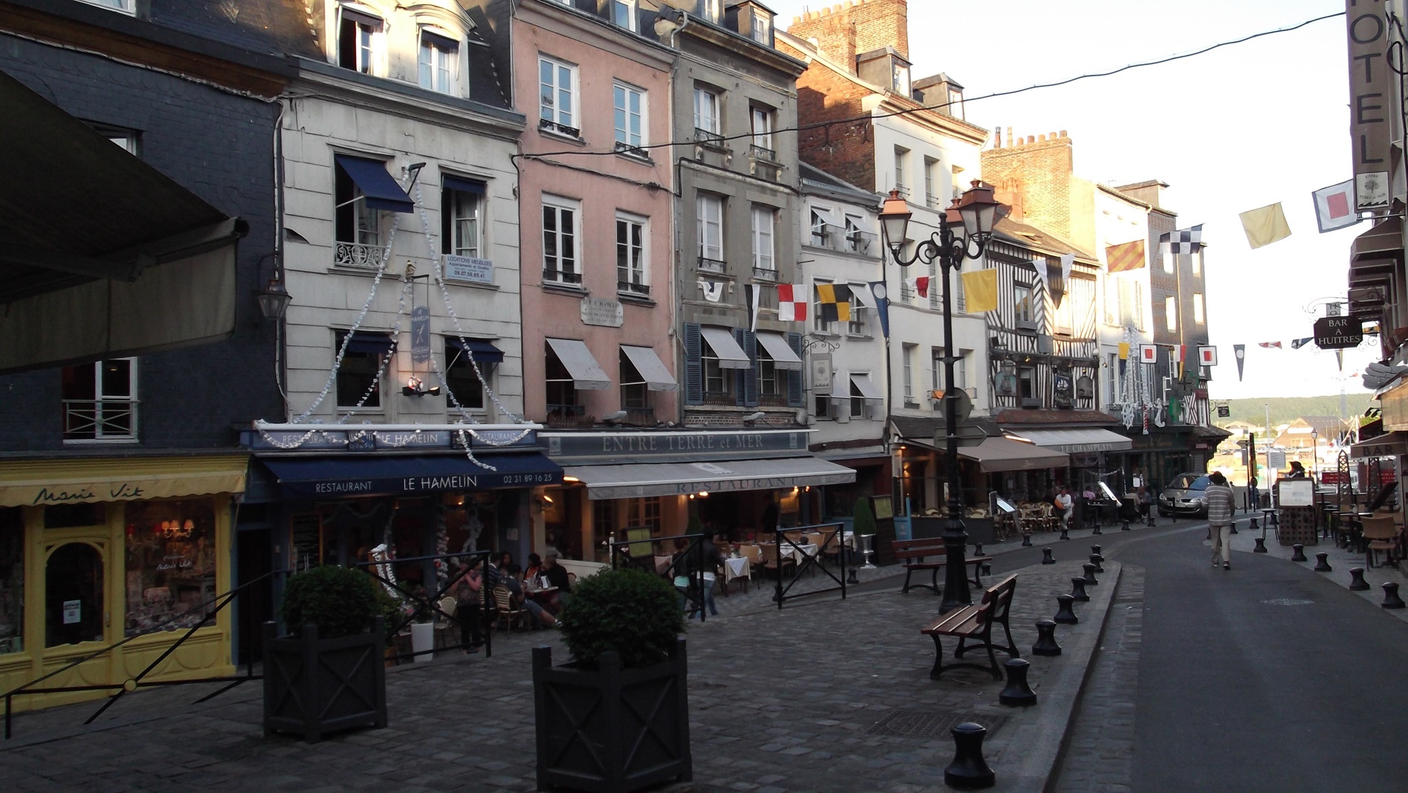 Heute ist es auch am Abend noch sehr warm - tagsüber mit 28 Grad und Klimaanlage im Dauerbetrieb - und wir machen uns auf zu einer Runde durch Honfleur. Die Stadt ist immer noch voll mit Touristen, die in den zahllosen Restaurants sitzen. Kaum zu glauben, dass es hier eigentlich nur Souvenirläden und Restaurants gibt.