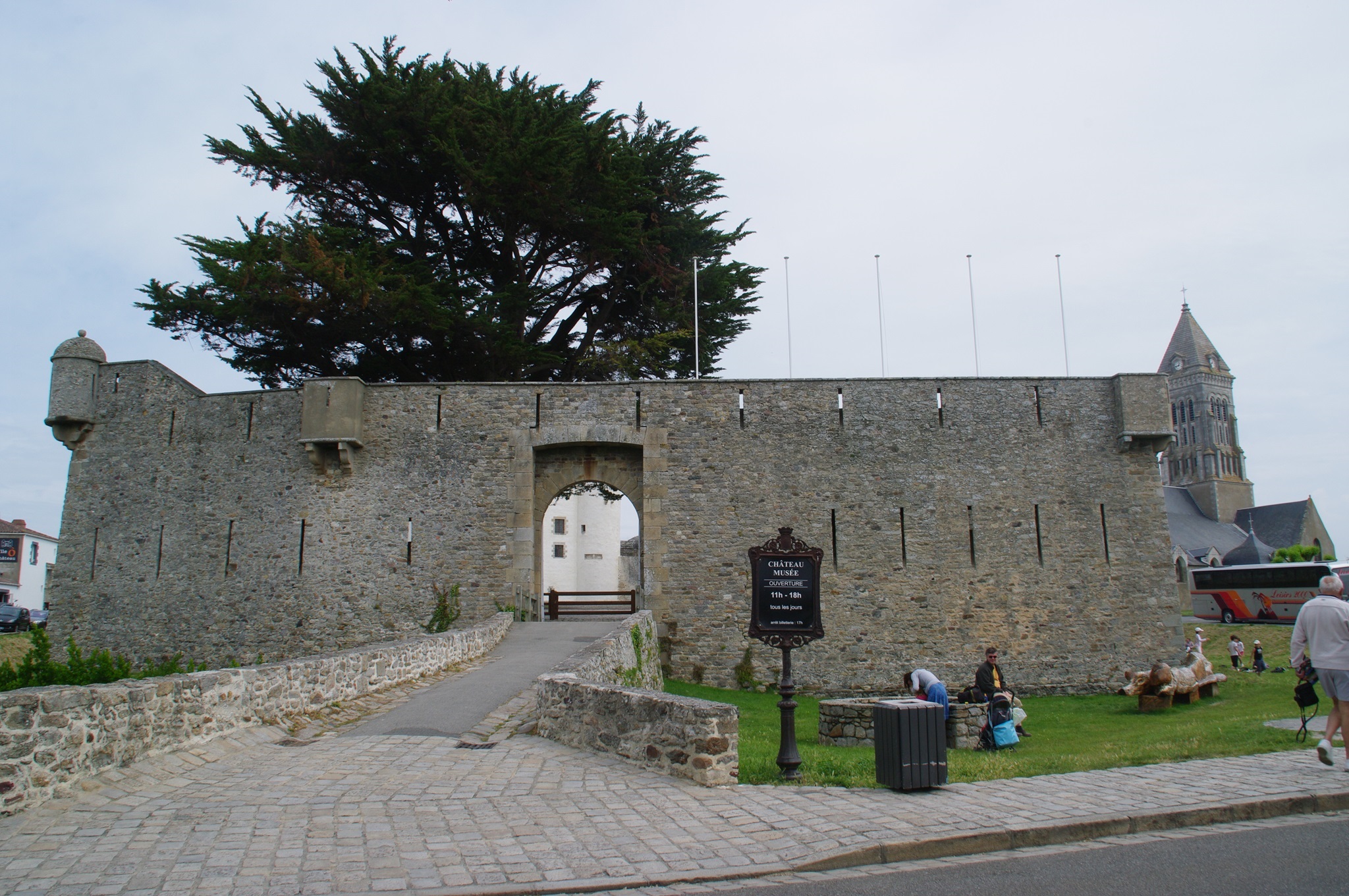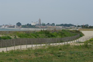Wir fahren trotzdem mit den Rädern herum und erforschen die Umgebung von Noirmoutier. Der Ort selber ist sehr schön und verfügt über eine mittelalterliche Burg und die Kirche des örtlichen Heiligen namens St. Philbert. Beides zusammen bestimmt das Stadtbild aus der Ferne und ist wirklich hübsch anzusehen.