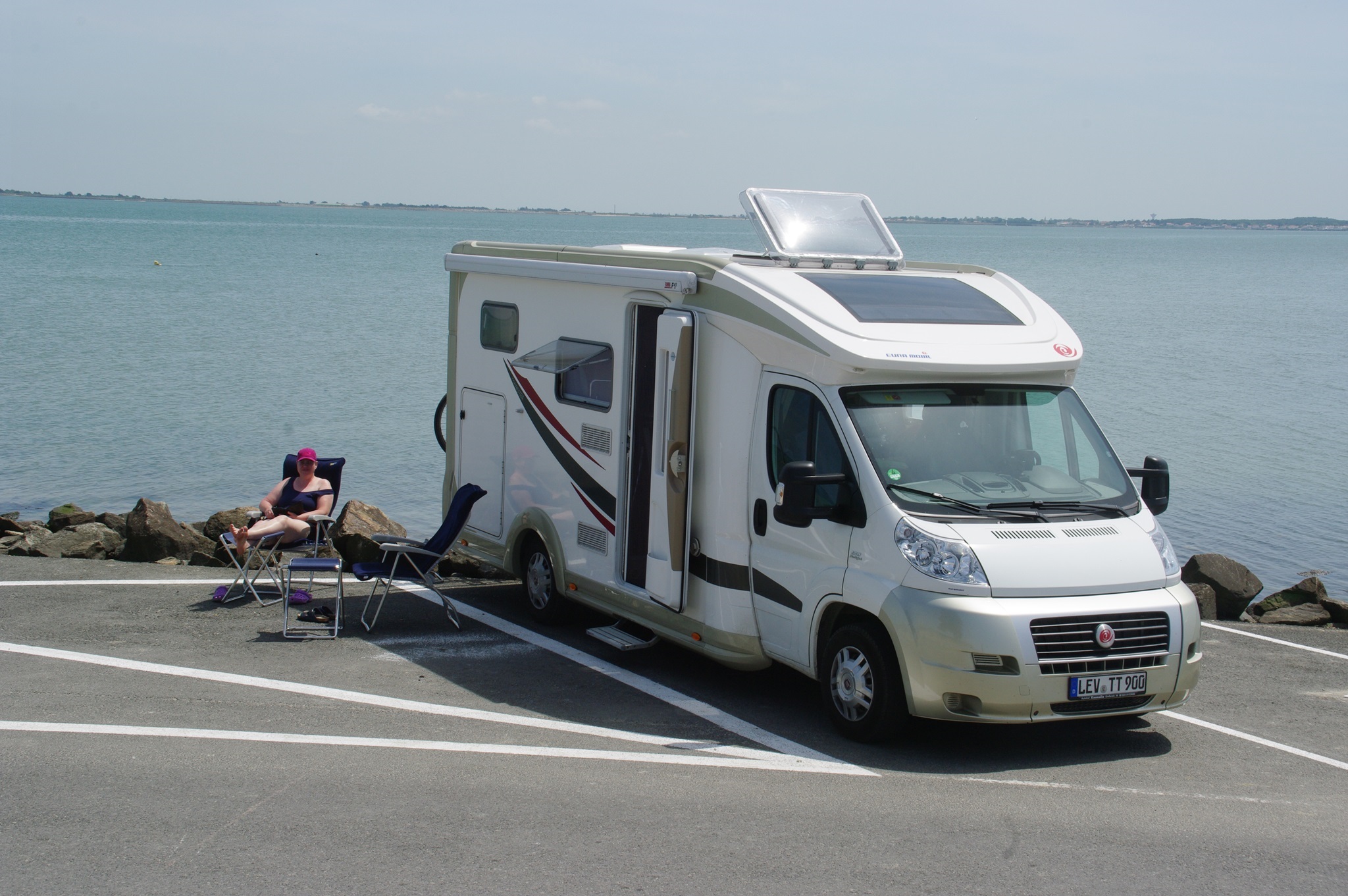 Zum Glück ist es nach La Rochelle nicht allzu weit. Wir haben den Stellplatz aus dem Promobil-Stellplatzführer im Navi programmiert. Es handelt sich um einen Großparkplatz am Rande der Innenstadt mit einem speziell ausgewiesenen Bereich für Wohnmobile.