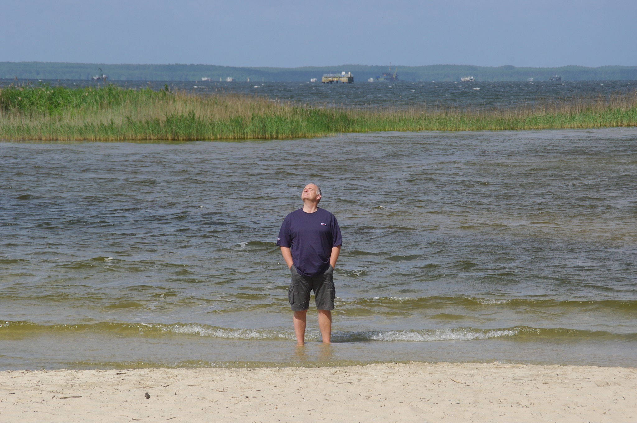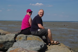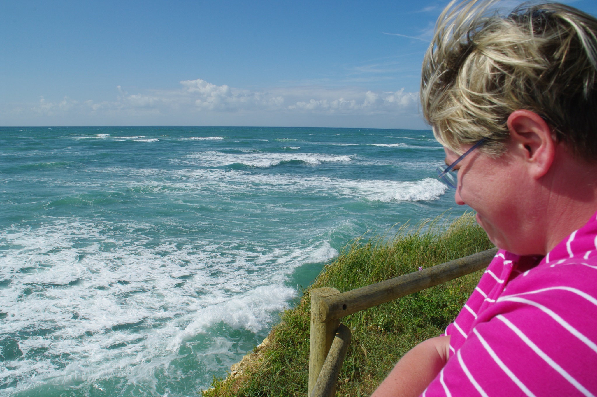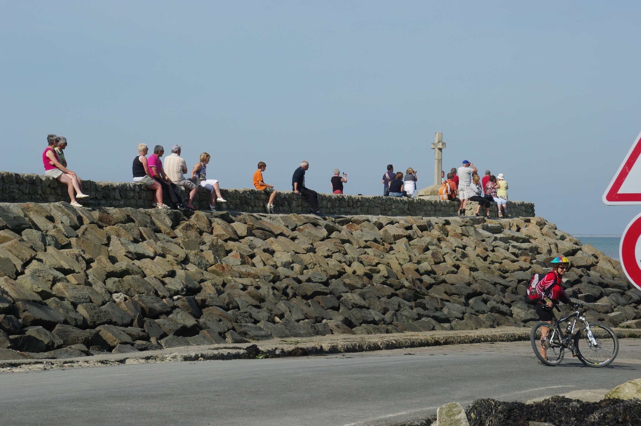 Tina ist heute gar nicht zu bremsen und fährt den größten Teil der Tagesstrecke. An dem Rastplatz vor dem Mt. Saint Michel machen wir eine Pause. Normalerweise kann man von hier aus den berühmten Klosterfelsen sehen, doch heute leider nicht. Zwar ist es inzwischen wieder sonnig und genauso warm wie gestern, aber über dem Meer hängt dichter Dunst, so dass vom Mt. Saint Michel nichts zu sehen ist.