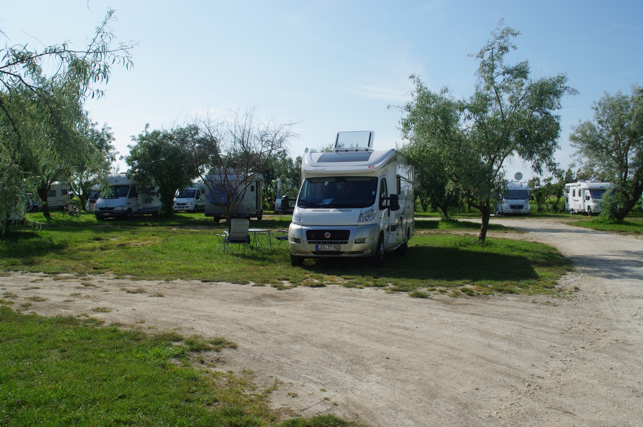 Nach der Besichtigung geht es dann endlich weiter zum heutigen Stellplatz. Offenbar handelt es sich um einen ehemaligen Campingplatz, der mittels Schranke und Bezahlautomat in einen selbstorganisierten Betrieb umgewandelt wurde.