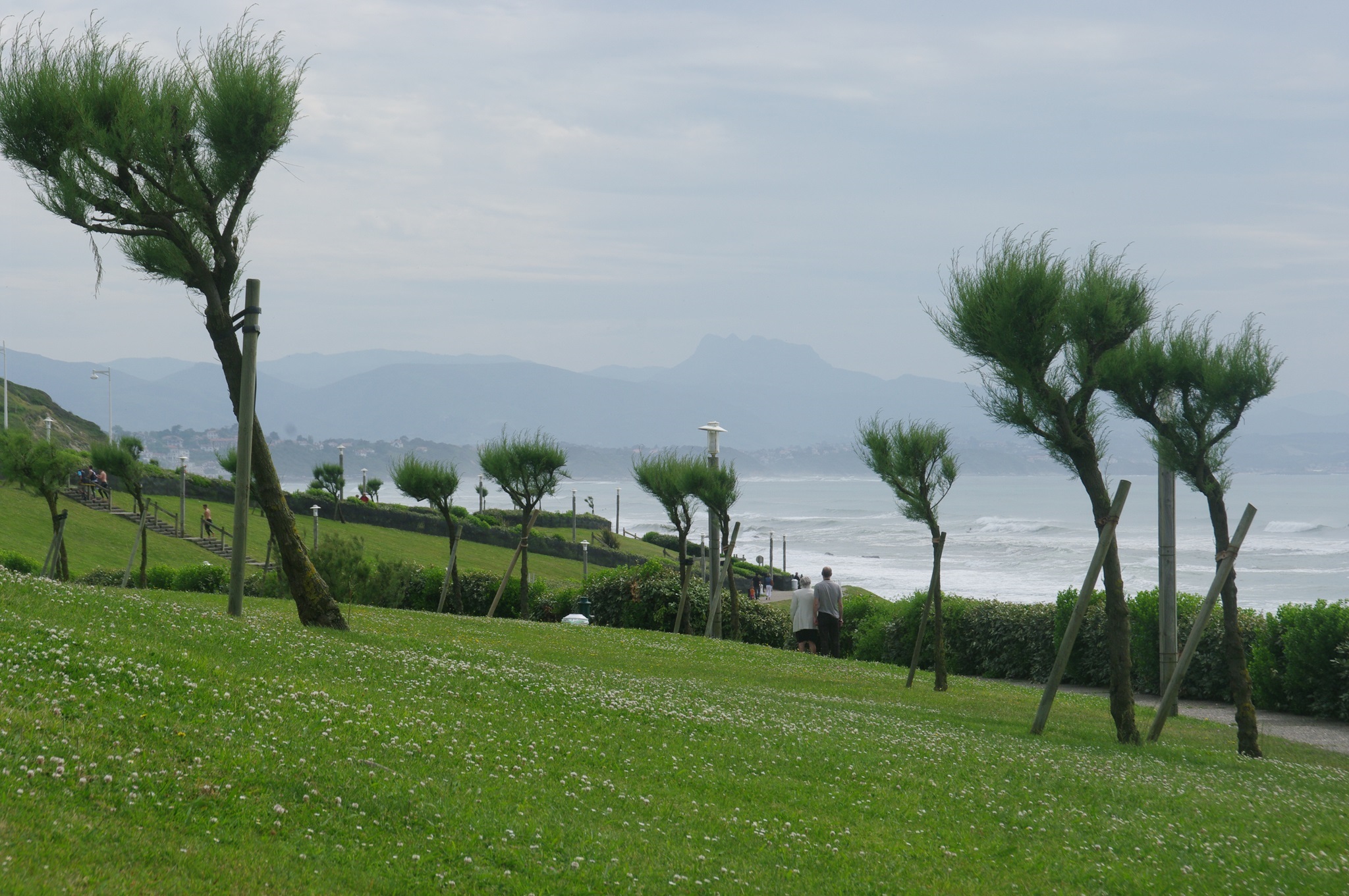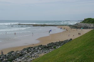 In den Reiseführern ist immer vom sonnenverwöhnten Biarritz zu lesen. Leider ist es auch hier wie schon so oft, wo wir hinfahren, dass die Sonne gerade mal eine Pause einlegt. Es ist den ganzen Tag über stark bewölkt und immer wieder fallen ein paar Regentropfen, allerdings so wenig dass man deshalb noch keinen Regenschirm benötigt. Aber auch so viel, dass wir beschließen, uns nur ein kleines Stück vom Stellplatz wegzubewegen und nur den direkt angrenzenden Strand mit Park und Promenade zu besichtigen. Den Besuch der Innenstadt nehmen wir uns für morgen vor.
