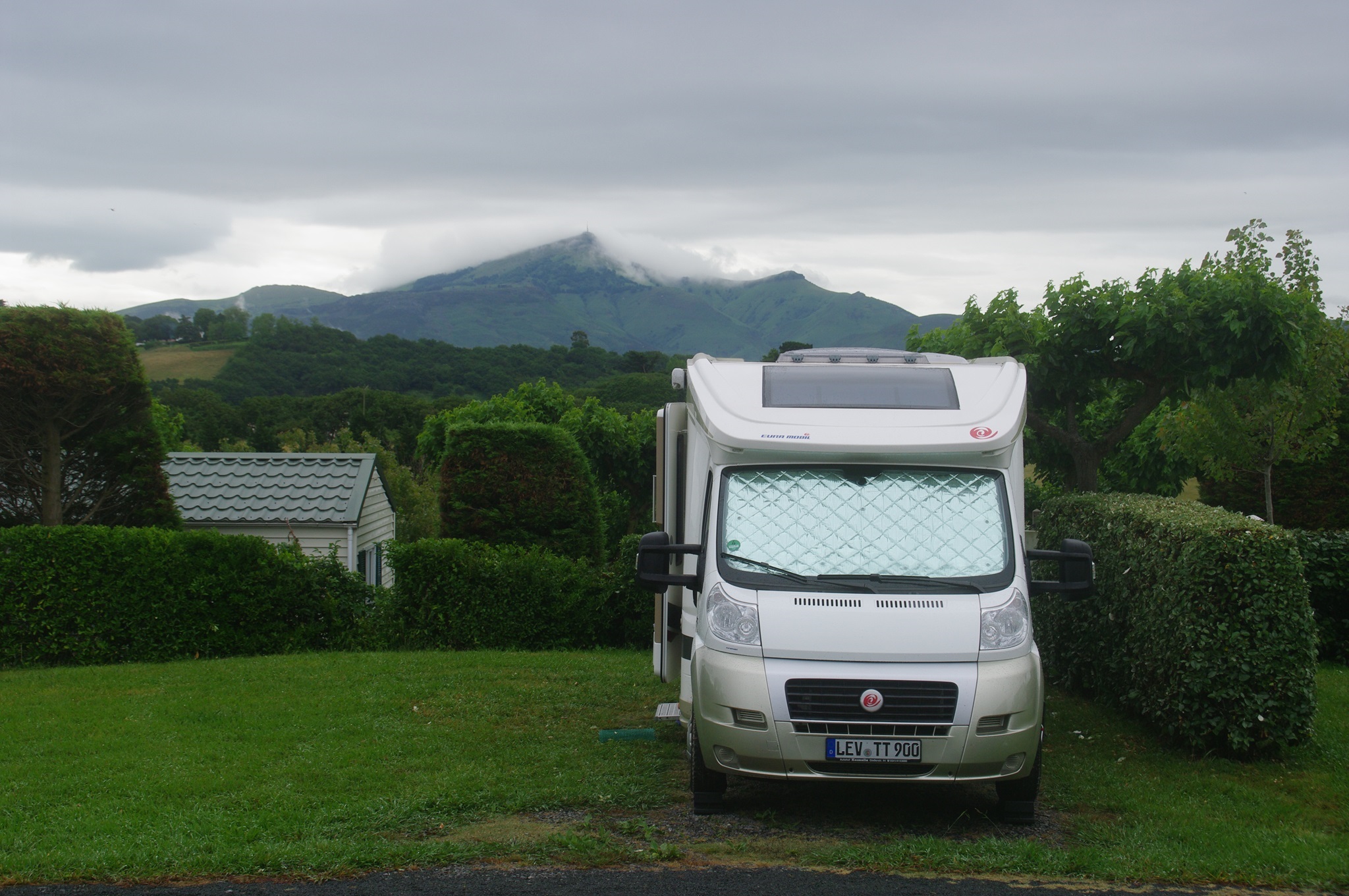 Hier bleiben wir und warten ab, ob morgen vielleicht wieder etwas vom Gipfel La Rhune zu sehen ist, so dass sich die Fahrt dorthin lohnen würde. Außerdem muss dieser Platz Eingang in die Stellplatzführer finden. Einen besseren Platz haben wir an diesem Teil der Küste nicht gefunden. Aber das wird nach dem Urlaub erledigt.