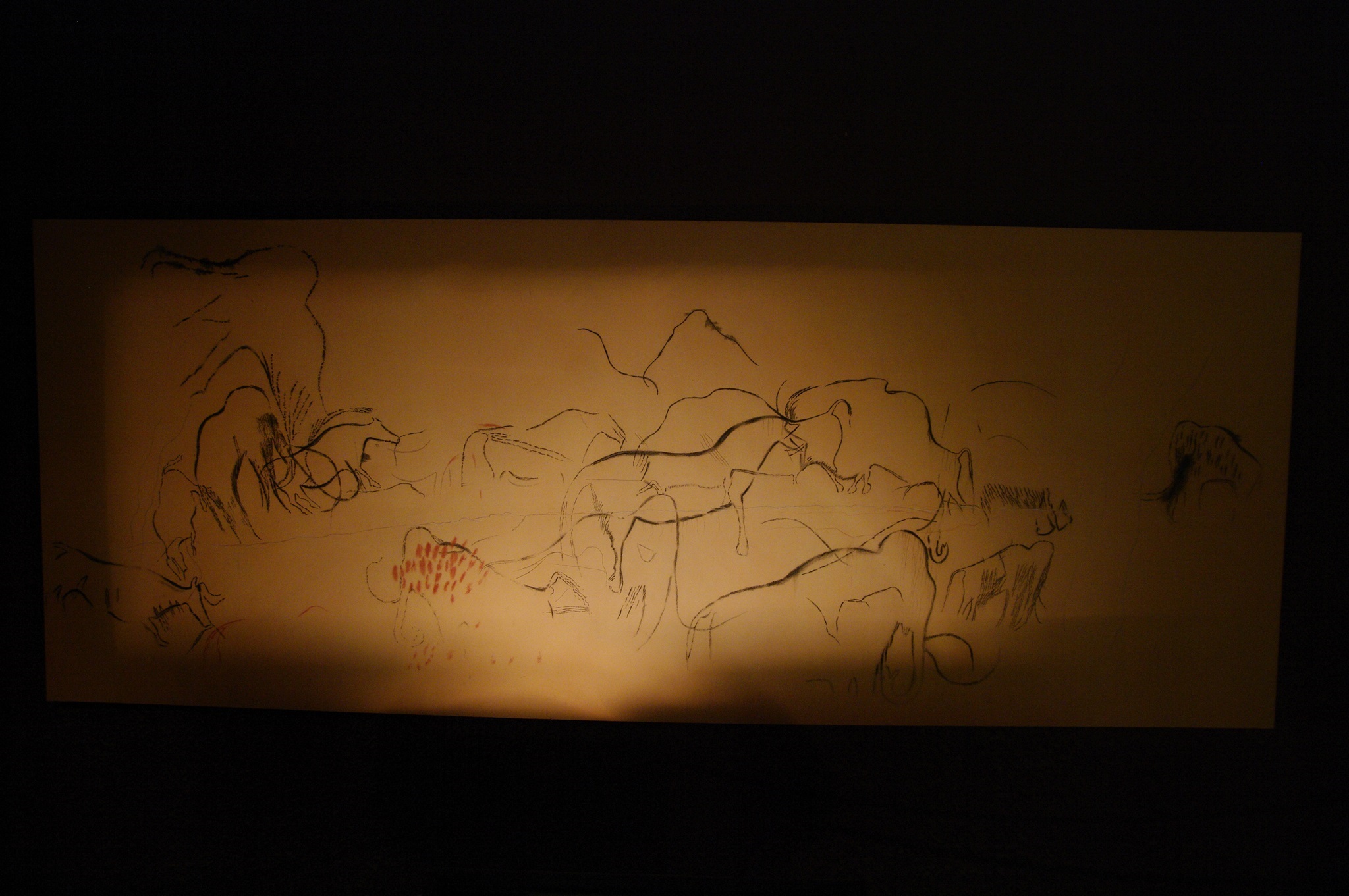 Der Führer zeigt uns nach und nach die prähistorischen Höhlenmalereien und hebt sich die „Pferdewand“ quasi als Höhepunkt bis zum Schluss auf. Viele dieser Zeichnungen hier in dieser Höhle kennt man aus Schulbüchern oder Fernsehsendungen und es ist spannend das alles im Original zu sehen. Da steht man also an einer Stelle, an der vor 24.000 Jahren einer unserer Vorfahren stand und dort seine Malerei oder einen Fußabdruck im Schlamm hinterlassen hat. Beeindruckend.