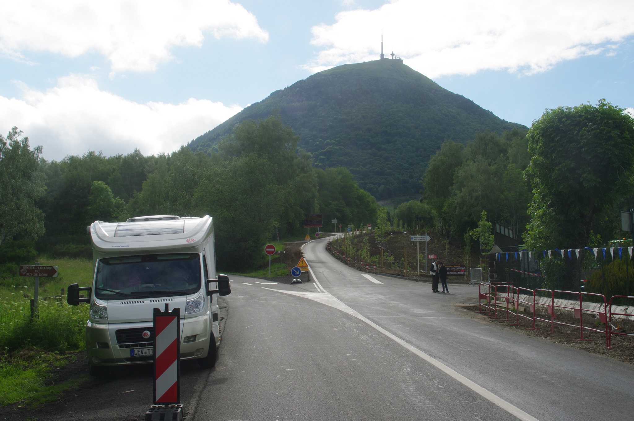 Wir fahren direkt zum Puy de Dome, um dort einmal zu checken, wie das so mit den Abfahrtzeiten und Fahrpreisen aussieht und werden ganz böse überrascht. Die Eisenbahn wird erst am Samstag wieder fahren. Ungläubig versuche ich zu argumentieren, dass wir doch auf der Anfahrt schließlich die Züge am Berghang gesehen hätten. Doch mir wird erklärt, dass das nur Testfahrten seien. Erst am Samstag würde die Bahnstrecke offiziell eröffnet.