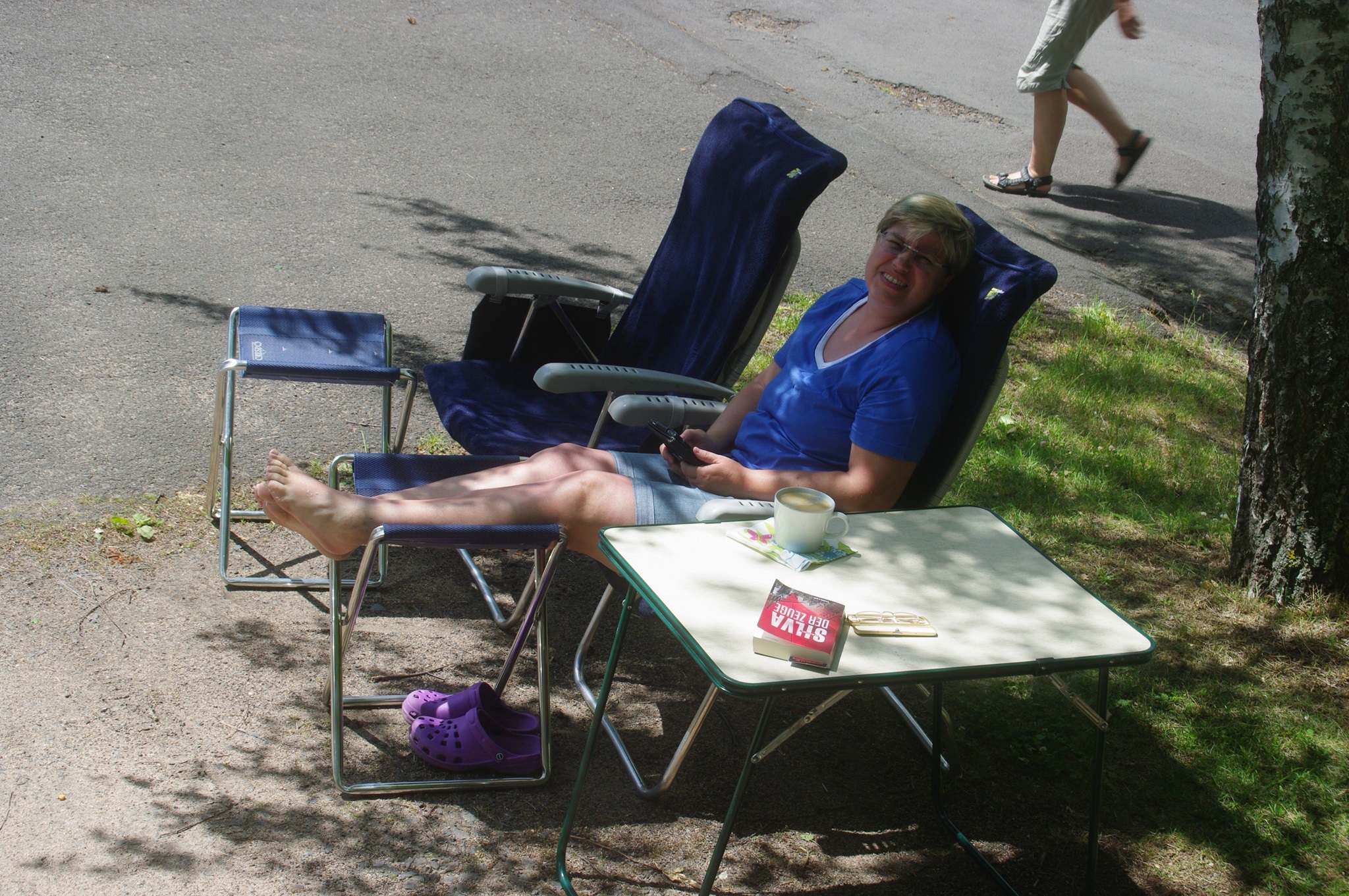 Aber es ist auch ein gemütlicher Nachmittag, bei dem wir uns sehr entspannen, während wir neben dem Mobil sitzen. Da wir uns zunächst auch in der Sonne aufgehalten hatten, bevor wir uns später in den Schatten des Mobils zurückziehen, tragen wir beide auch ordentliche Sonnenbrände davon.
