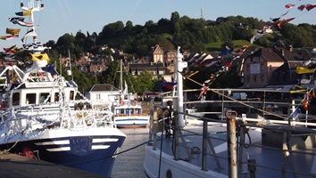 Direkt auf der anderen Seite der Brücke liegt das Städtchen Honfleur. Zufällig waren wir auch vor einem Jahr zu Pfingsten in diesem Ort. Damals sind wir von Honfleur aus aber nach Norden gefahren. Heute erscheint es uns ein guter Anknüpfungspunkt für unsere weitere Fahrt nach Süden zu sein.