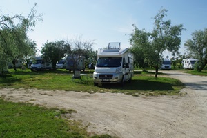 Es sind bereits etliche Mobile hier, die sich auf die relativ schmal eingeteilten Stellplätze quetschen. Das gefällt uns auch nicht, selbst wenn die Lage des Platzes ansonsten ganz schön ist.