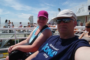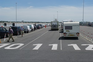 In der Stadt werden wir einen merkwürdigen Umweg zum Fährhafen entlanggeführt. Uns wird klar, dass die Route extra so verschlungen ist, um im Sommer mehr Platz für die schier unendliche Warteschlange von Pkw zu haben, die sich vor der Fähre zurückstauen.