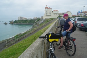 Nach dem Frühstück „satteln“ wir die Stahlrösser und machen uns auf den Weg in die Innenstadt. Dabei nehmen wir den Weg an der Küste entlang. Der Blick über das Meer, die Buchten die Nachbarstädte und die im Hinterland steil ansteigenden Pyrenäen ist sehr schön und muss bei Sonnenwetter wohl richtig toll sein.