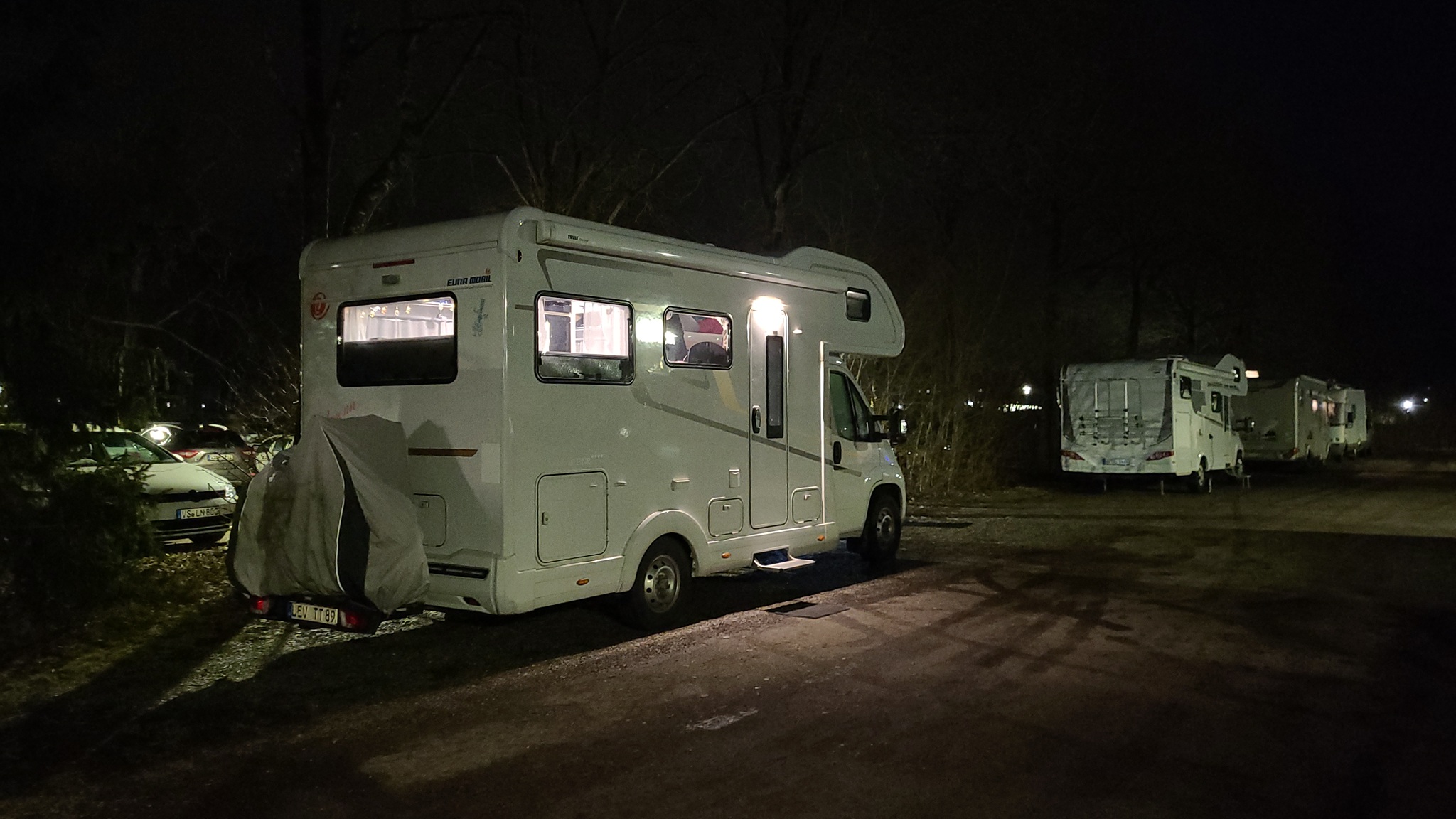 Für die 450 Kilometer sind wir acht Stunden unterwegs und treffen erst zur Sonnenuntergangszeit in Bad Dürrheim ein. Aber immerhin, wenigstens noch mit Tageslicht, wodurch mir das unangenehme Rangieren im Dunklen erspart bleibt.