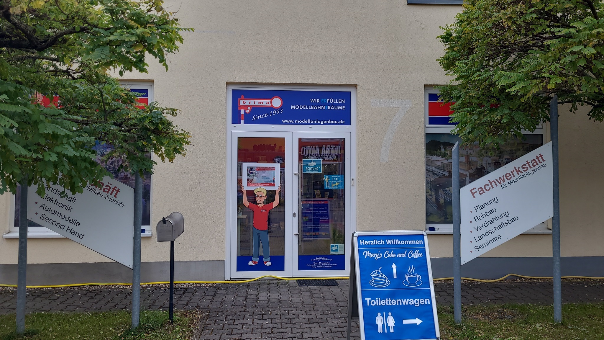 Am Vormittag fahre ich dann zu der Fa. Brima Modellanlagenbau in Gau-Algesheim, wo der Tag der offenen Tür stattfindet. Es handelt sich hier nicht um ein normales Geschäft für Modelleisenbahnen. Die Firma produziert im Auftrag und nach Wünschen der Kunden Modelleisenbahnanlagen.