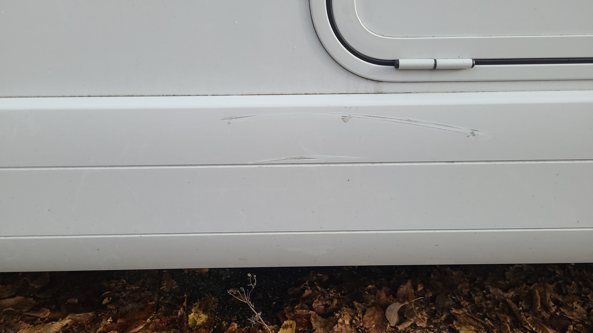 Der Stein, eigentlich ein kleiner Felsen, war aber trotzdem so niedrig, dass ich ihn im Rückspiegel nicht mehr gesehen hatte. Tiefe Kratzspuren an der Seite sind nun also die Folge.