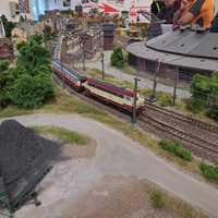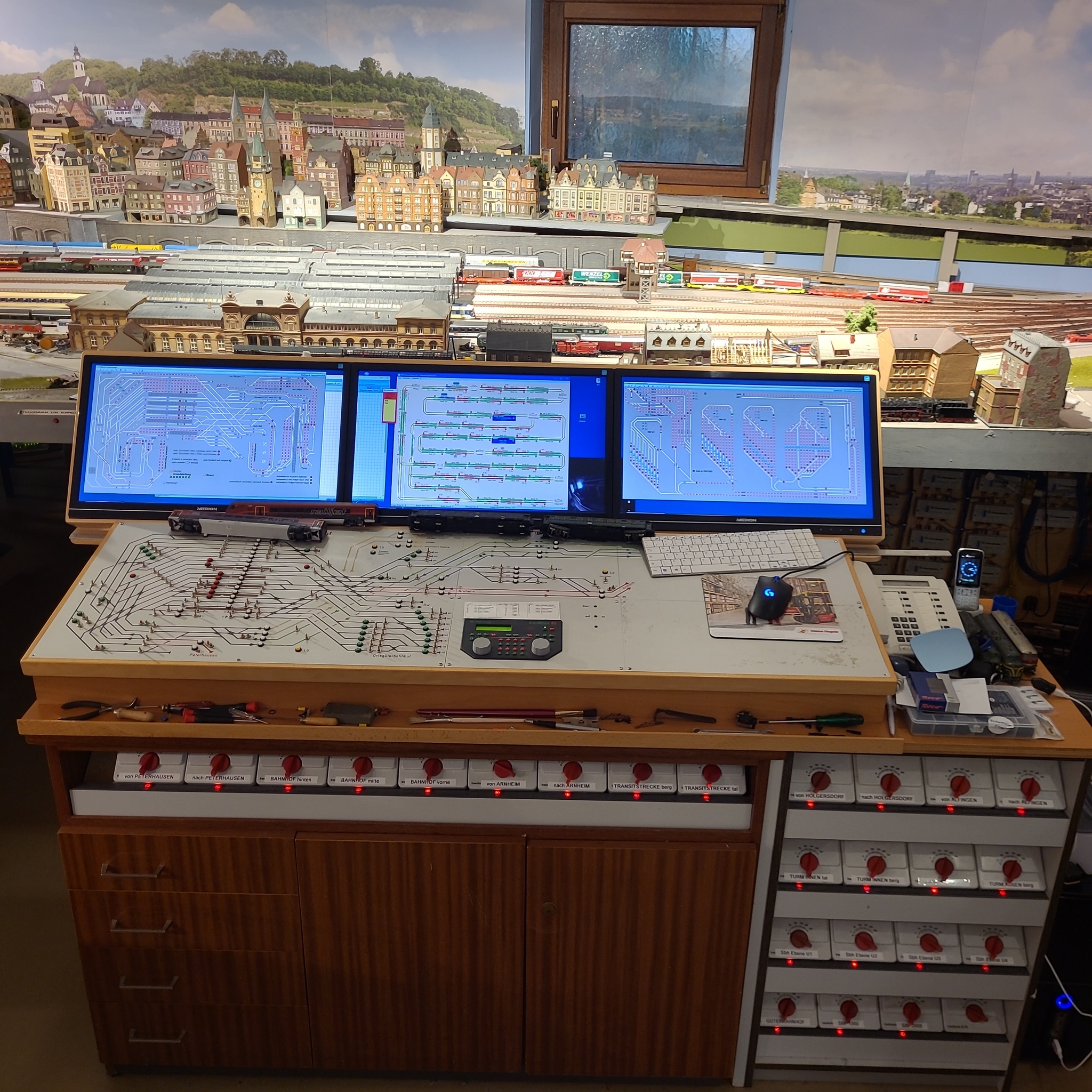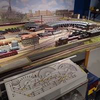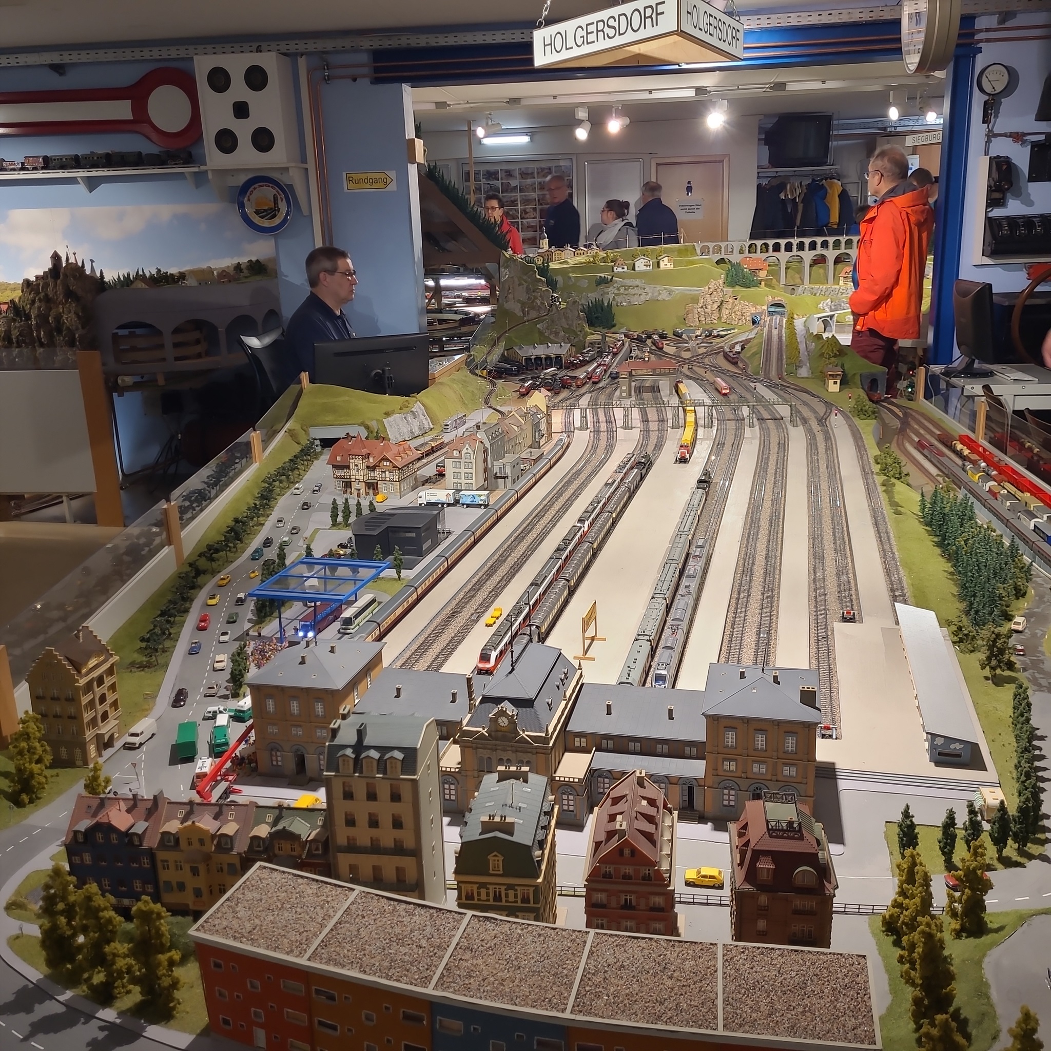 Als Besucher zahle ich 6 Euro Eintritt und darf dann die große Anlage bewundern. Das Ganze ist so aufgebaut, dass jedes Mitglied einen eigenen Bahnhof besitzt, der ihm auch materiell tatsächlich gehört und den er pflegt und bedient. Zwischen den Bahnhöfen gibt es eine umlaufende Hauptstrecke von insgesamt 300 Metern Länge. Die "Fahrdienstleiter" der einzelnen Bahnhöfe schicken sich dann die Züge weiter.
