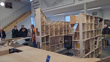 Die Anlagen werden in Segmenten erstellt, die nach Fertigstellung geteilt, an den Kunden geliefert und dort aufgebaut werden. Eine große Anlage gerade etwas über den Rohbau hinaus steht im Erdgeschoss und soll später einmal bis nach Frankreich geliefert werden.